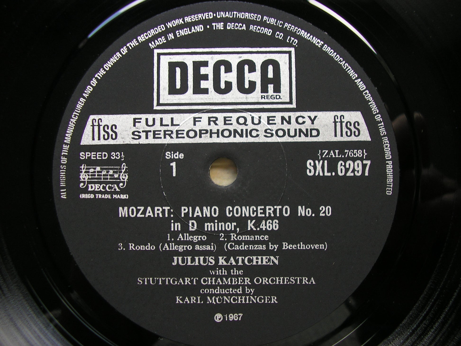 SXL 6297  MOZART: PIANO CONCERTOS K466 & K503    JULIUS KATCHEN / STUTTGART CHAMBER ORCHESTRA / KARL MUNCHINGER