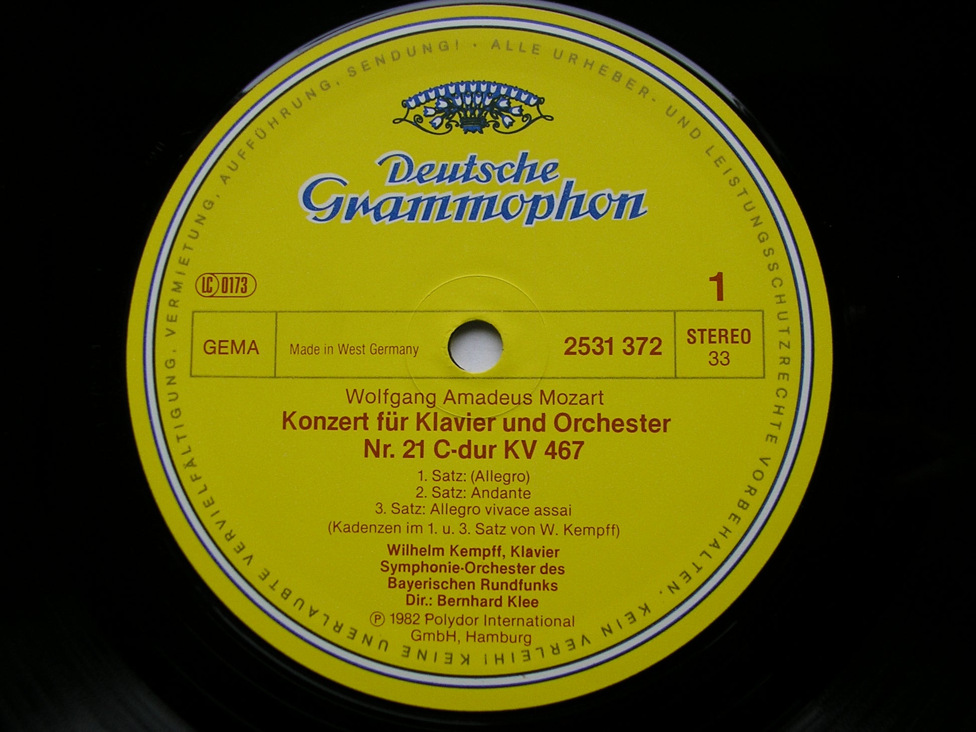 2531 372  MOZART: PIANO CONCERTOS Nos. 21 K467 & 22 K482    WILHELM KEMPFF / BAVARIAN RADIO SYMPHONY ORCHESTRA / BERNHARD KLEE