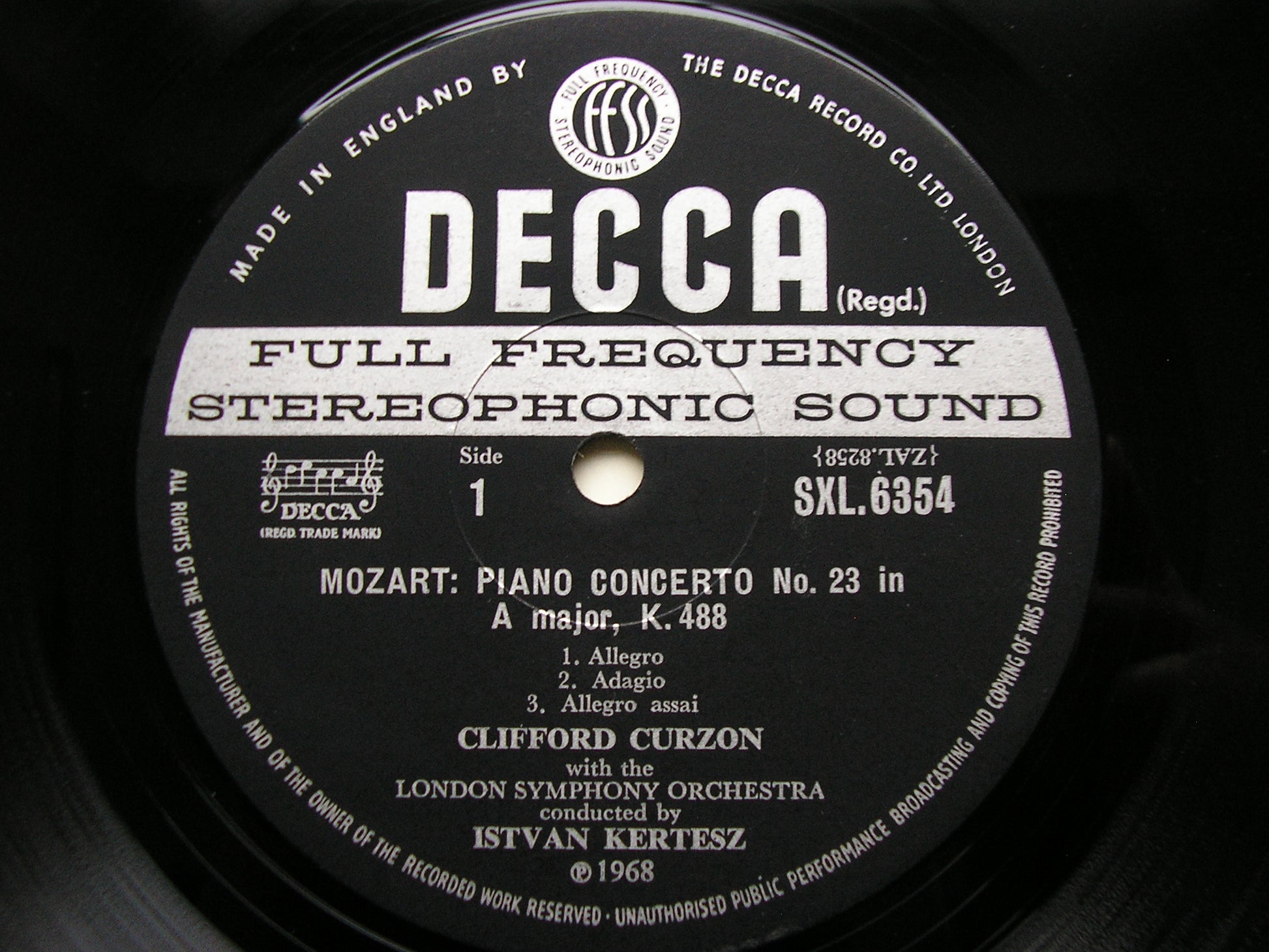 SXL 6354  MOZART: PIANO CONCERTOS K488 & K491     CLIFFORD CURZON / LONDON SYMPHONY ORCHESTRA