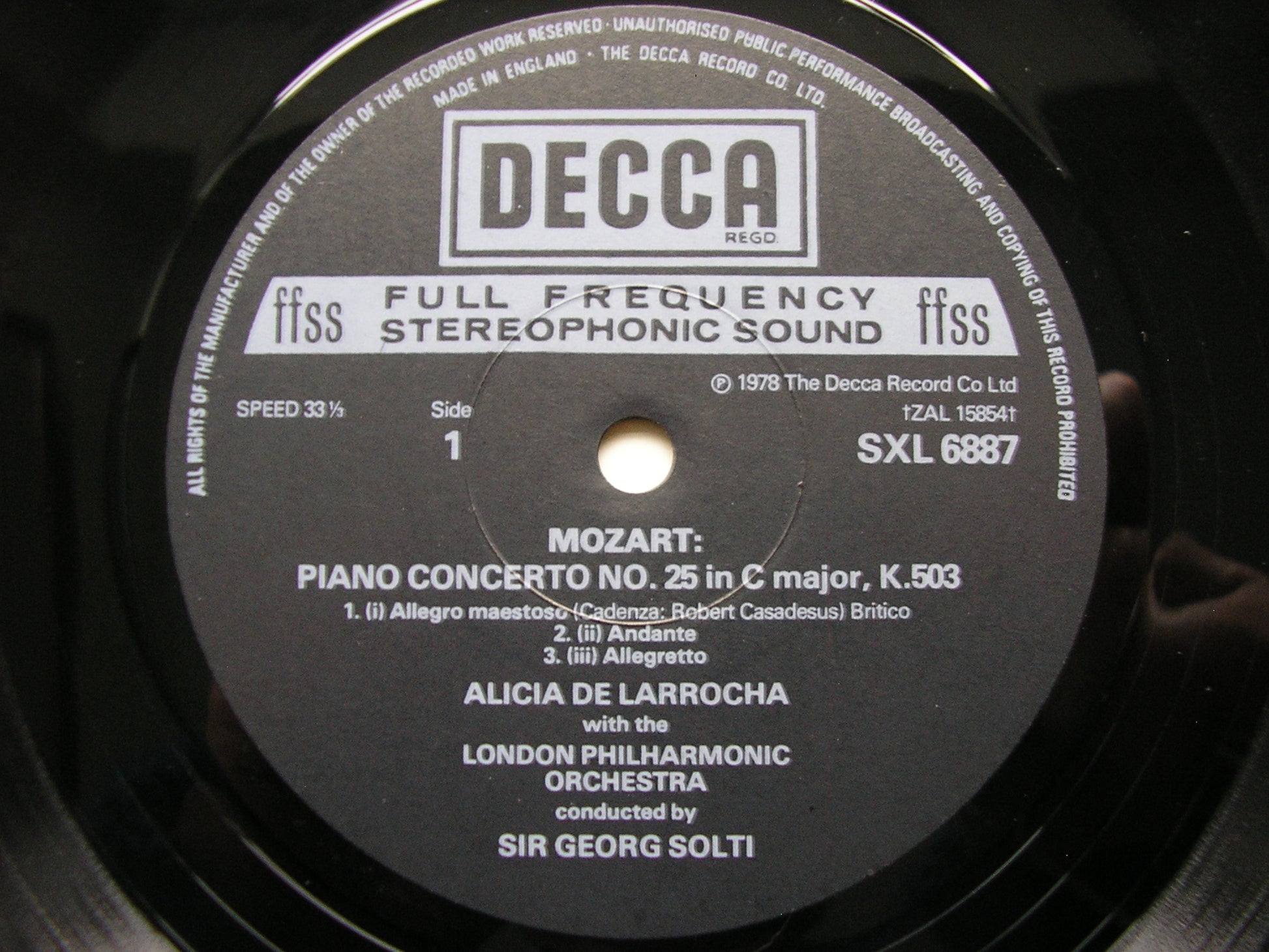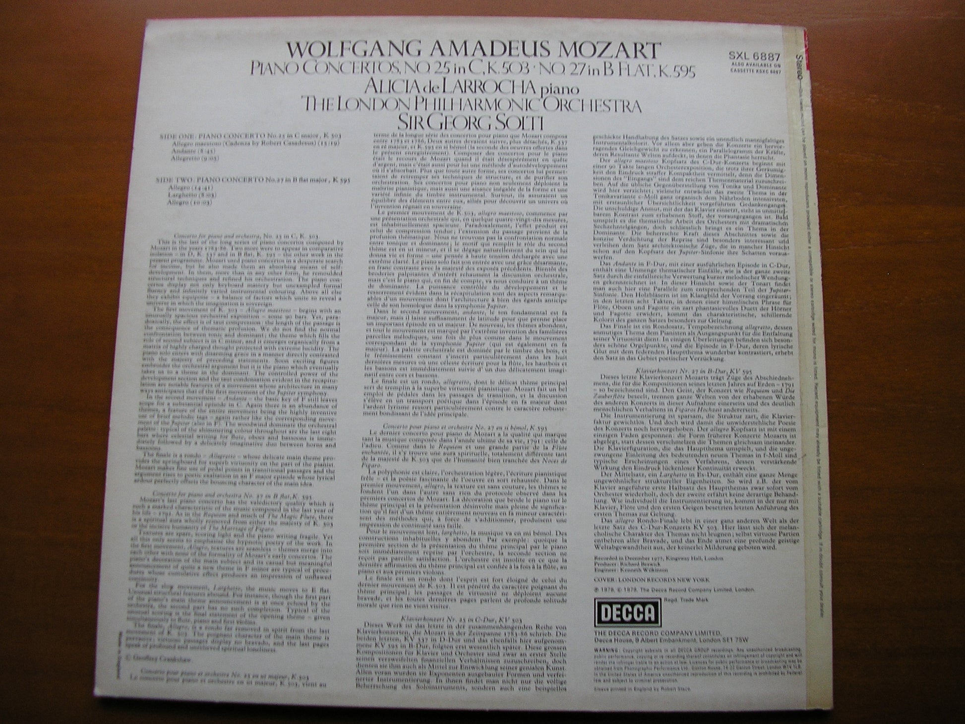 SXL 6887  MOZART: PIANO CONCERTOS K503 & K595      ALICIA DE LARROCHA / LONDON PHILHARMONIC ORCHESTRA / SIR GEORG SOLTI