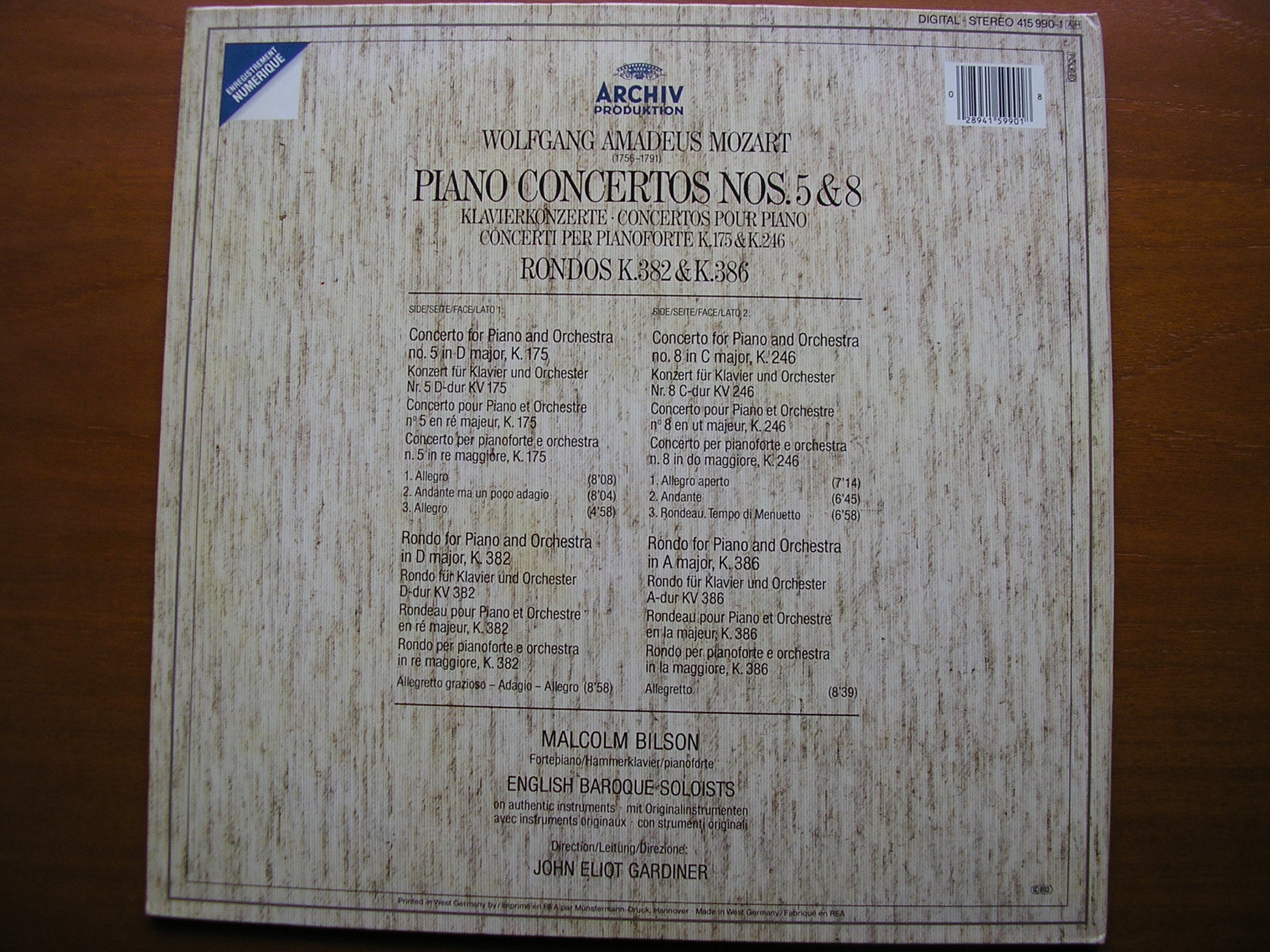 MOZART: PIANO CONCERTOS Nos. 5 & 8 BILSON / ENGLISH BAROQUE SOLOISTS / GARDINER 415 990