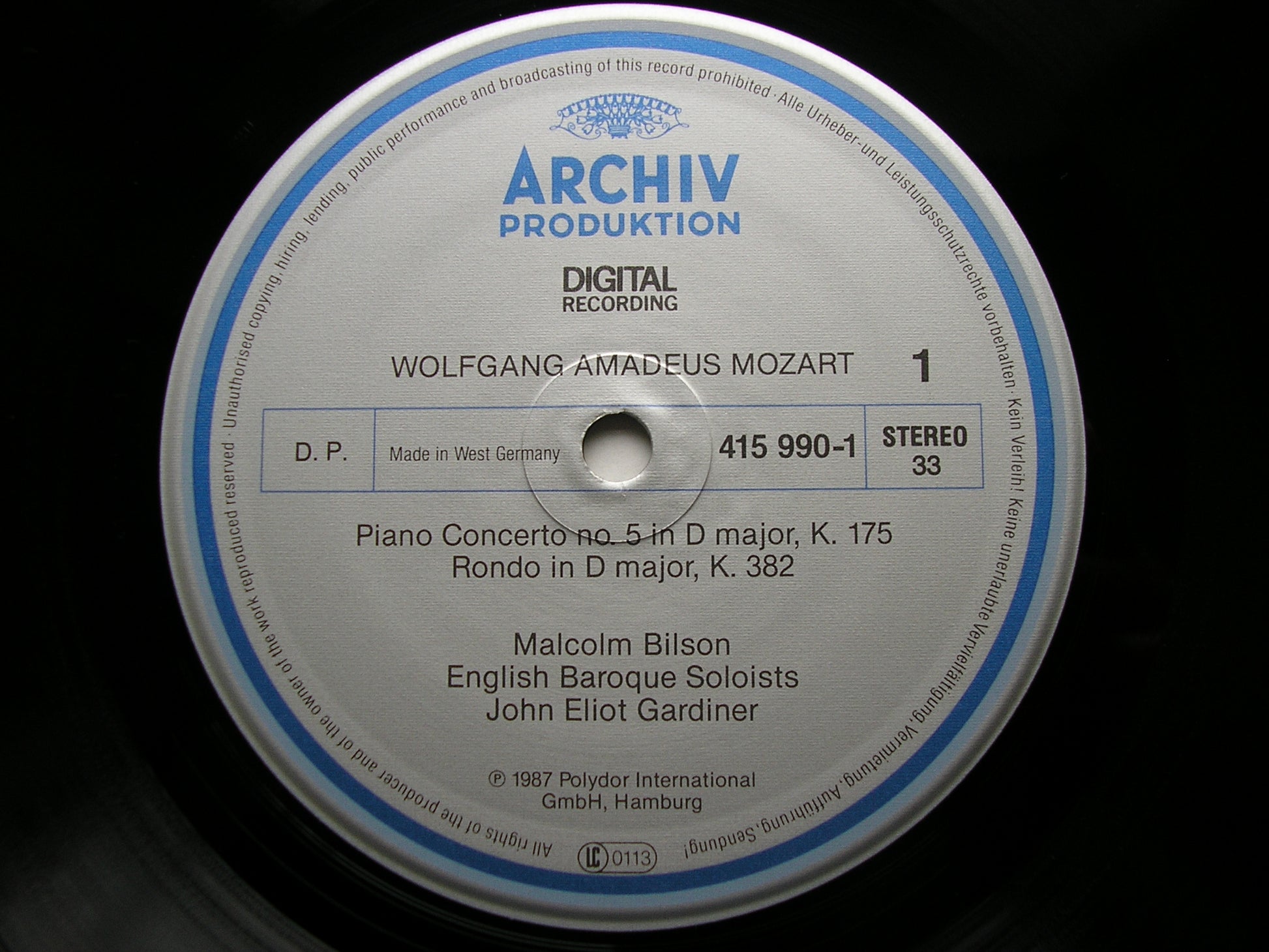 415 990  MOZART: PIANO CONCEROS K175 & K246 / RONDOS K382 & K386     MALCOLM BILSON / ENGLISH BAROQUE SOLOISTS / JOHN ELIOT GARDINER
