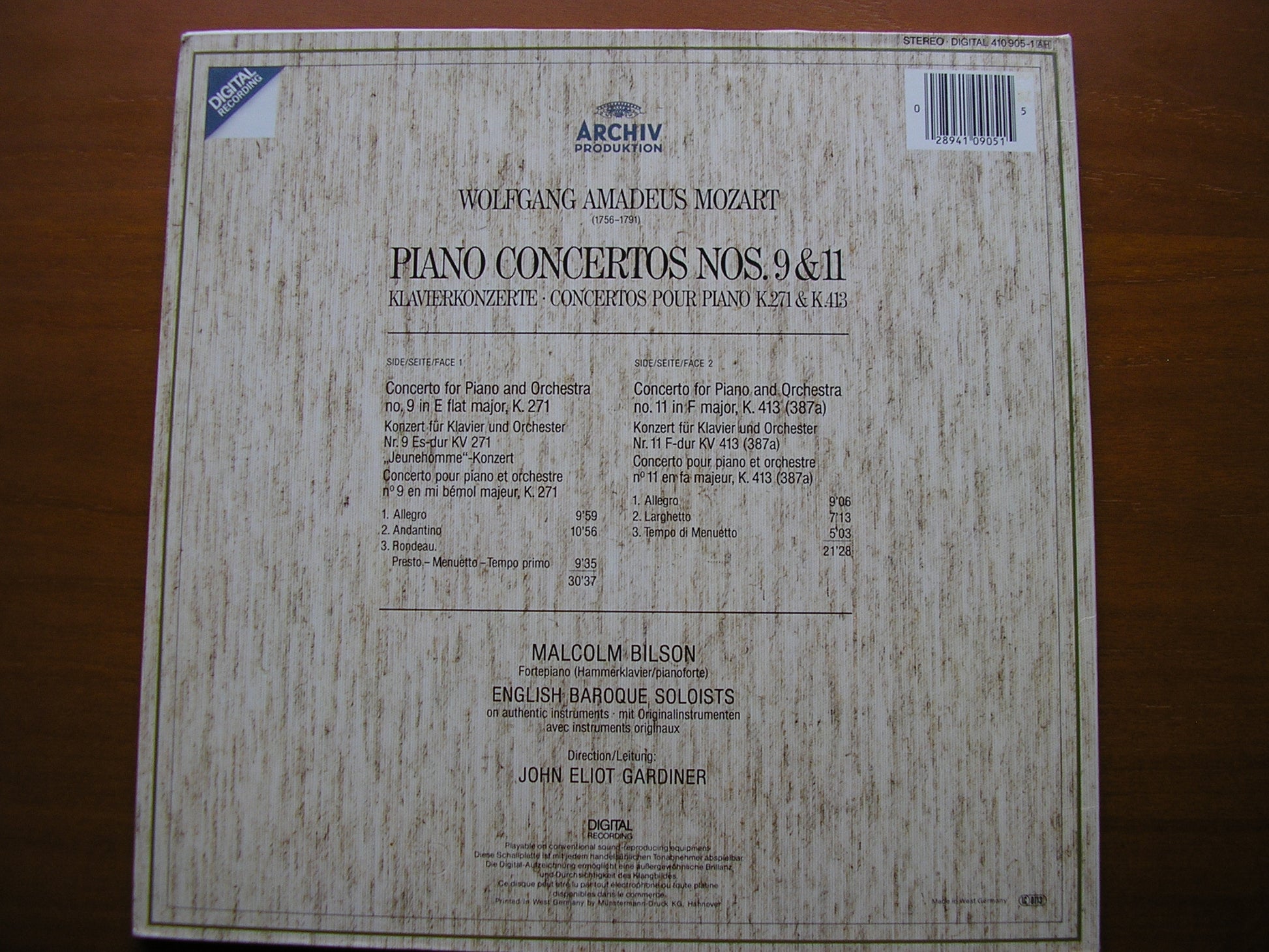 MOZART: PIANO CONCERTOS Nos. 9 & 11 BILSON / ENGLISH BAROQUE SOLOISTS / GARDINER 410 905