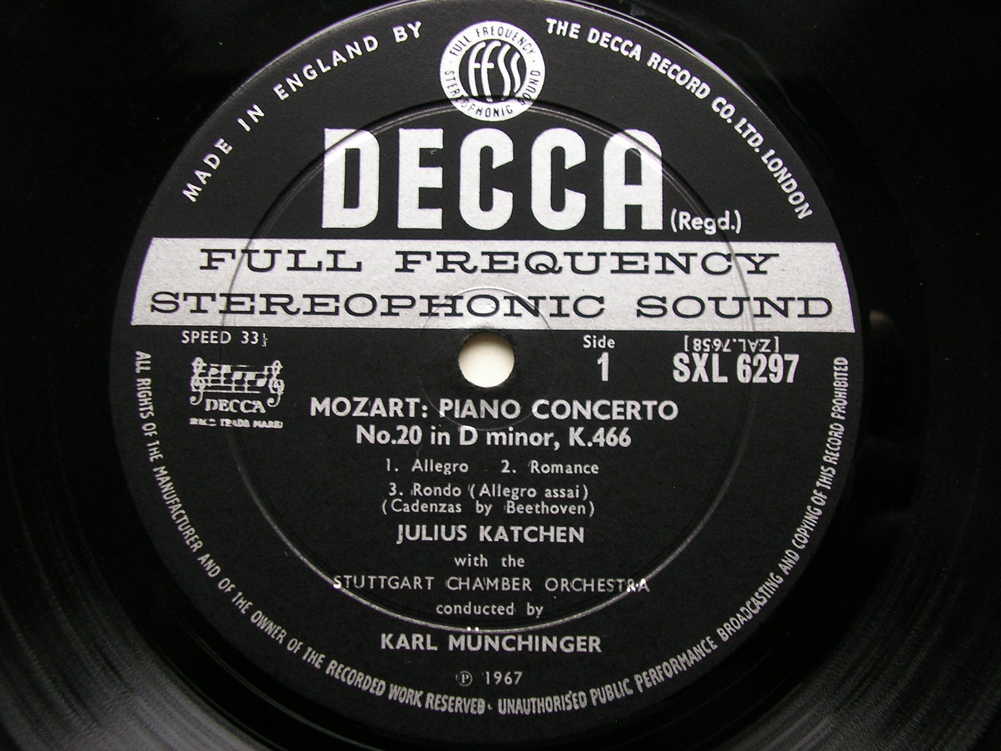 SXL 6297  MOZART: PIANO CONCERTOS K466 & K503       JULIUS KATCHEN / STUTTGART CHAMBER ORCHESTRA / KARL MUNCHINGER