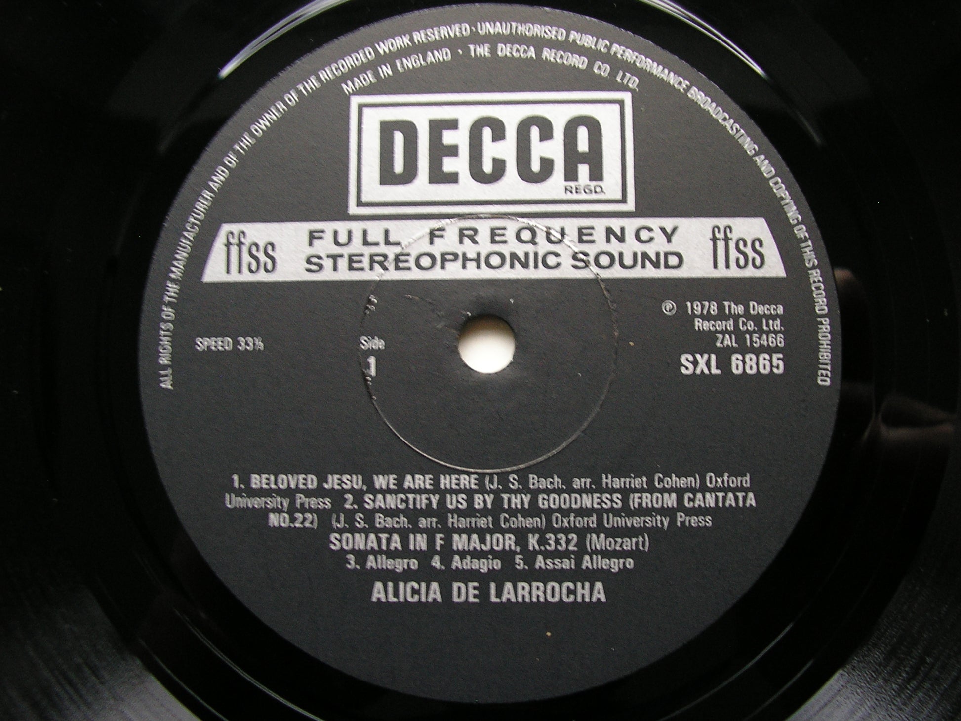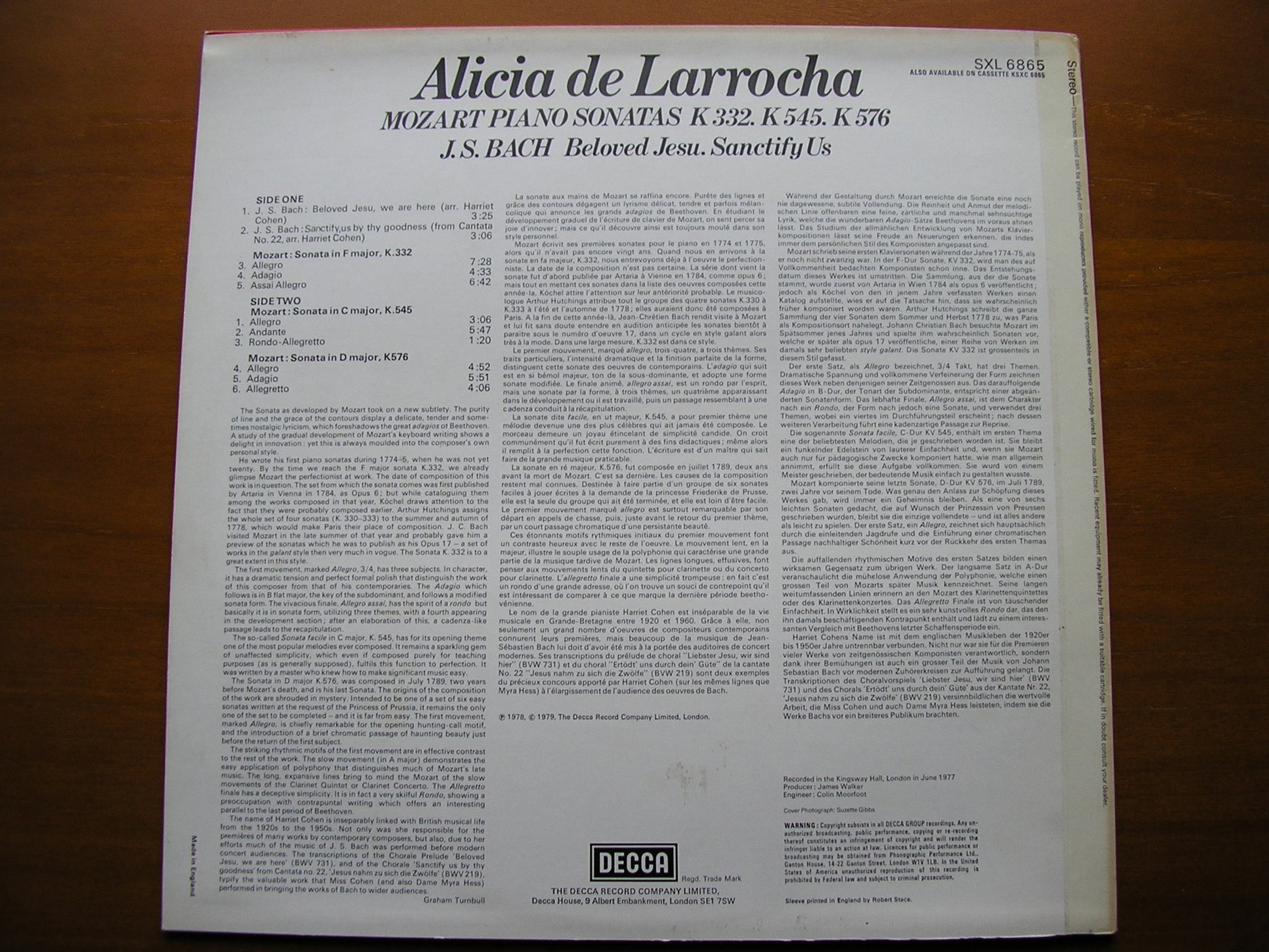 SXL 6865 MOZART: THREE PIANO SONATAS / BACH: TRANSCRIPTIONS Beloved Jesu / Sanctify Us      ALICIA DE LARROCHA