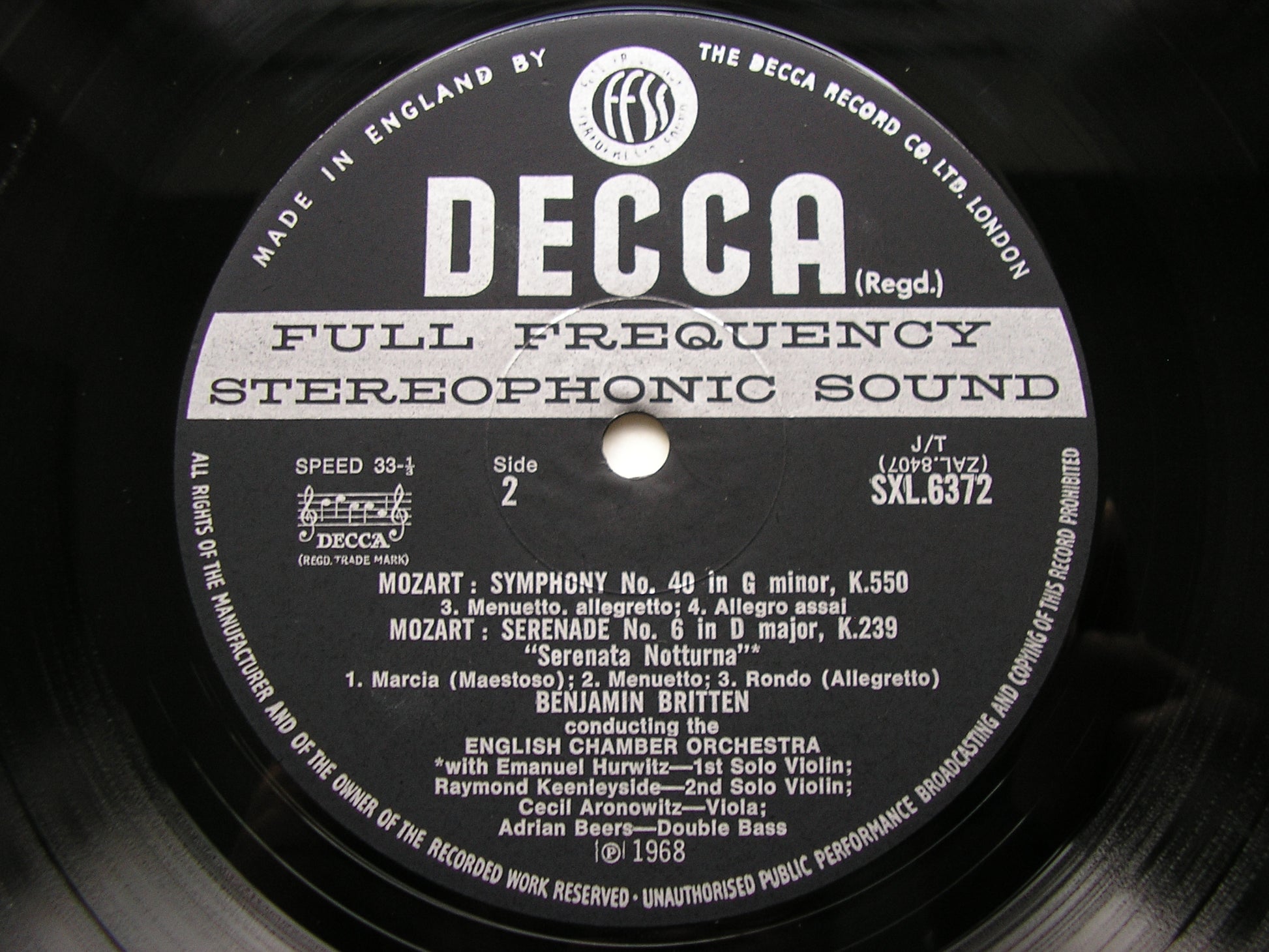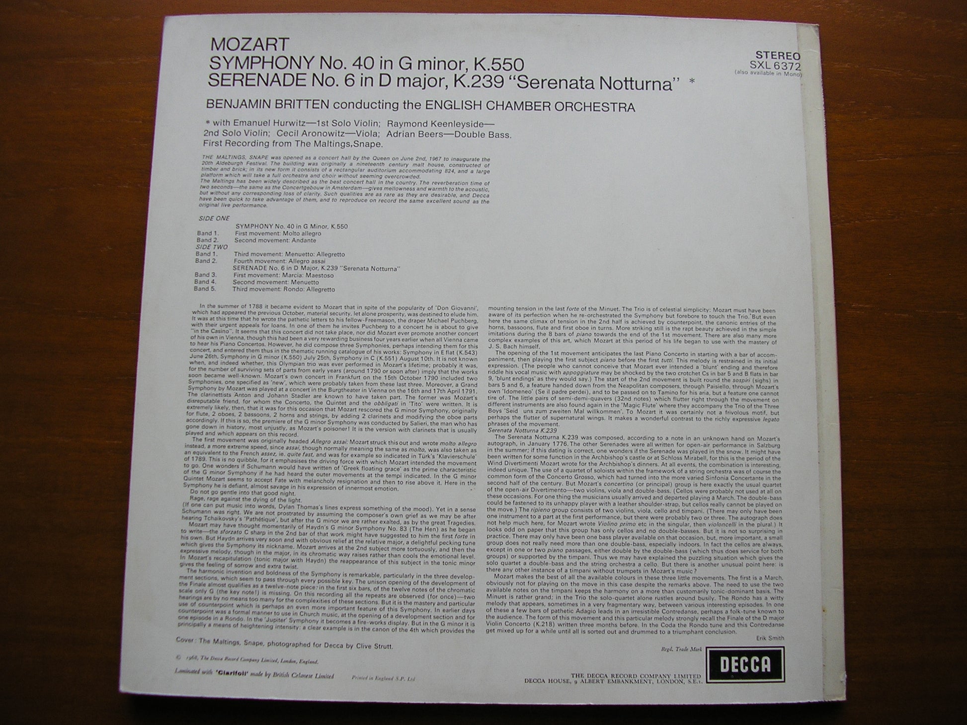 SXL 6372  MOZART: SYMPHONY No. 40 / SERENATA NOTTURNA    BENJAMIN BRITTEN / ENGLISH CHAMBER ORCHESTRA