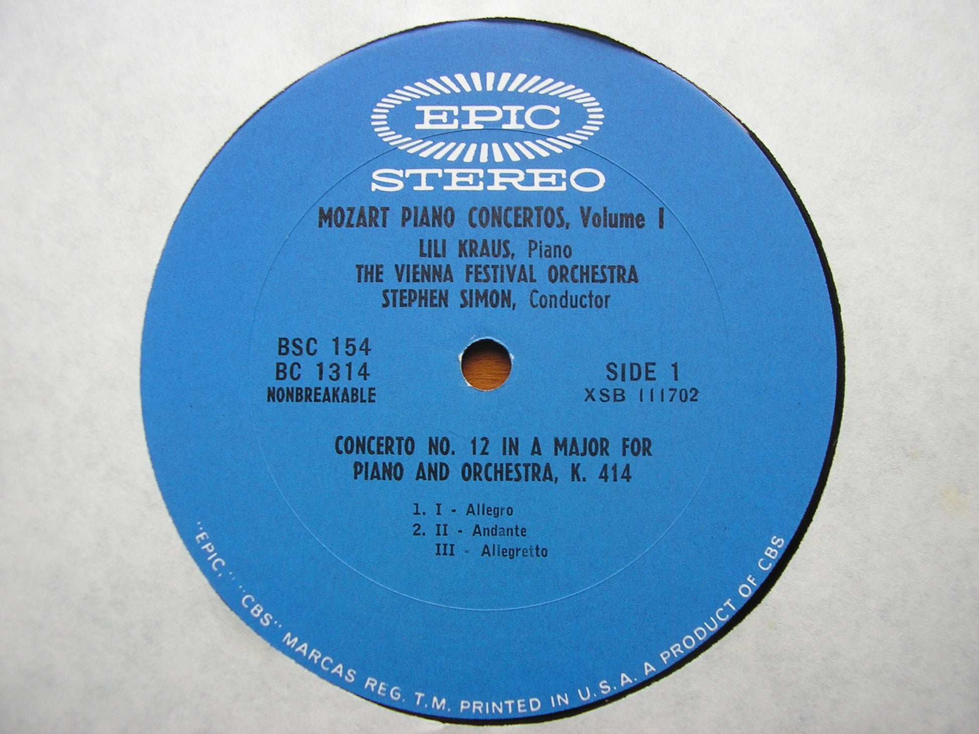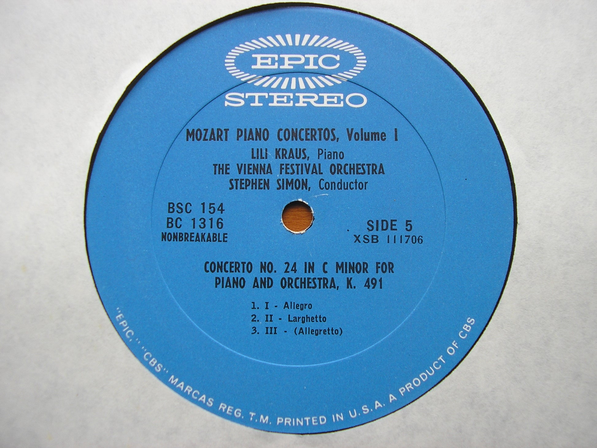 BSC 154  MOZART: PIANO CONCERTOS K414 / K456 / K466 / K488 / K491 / K537    LILI KRAUS / VIENNA FESTIVAL ORCHESTRA / STEPHEN SIMON