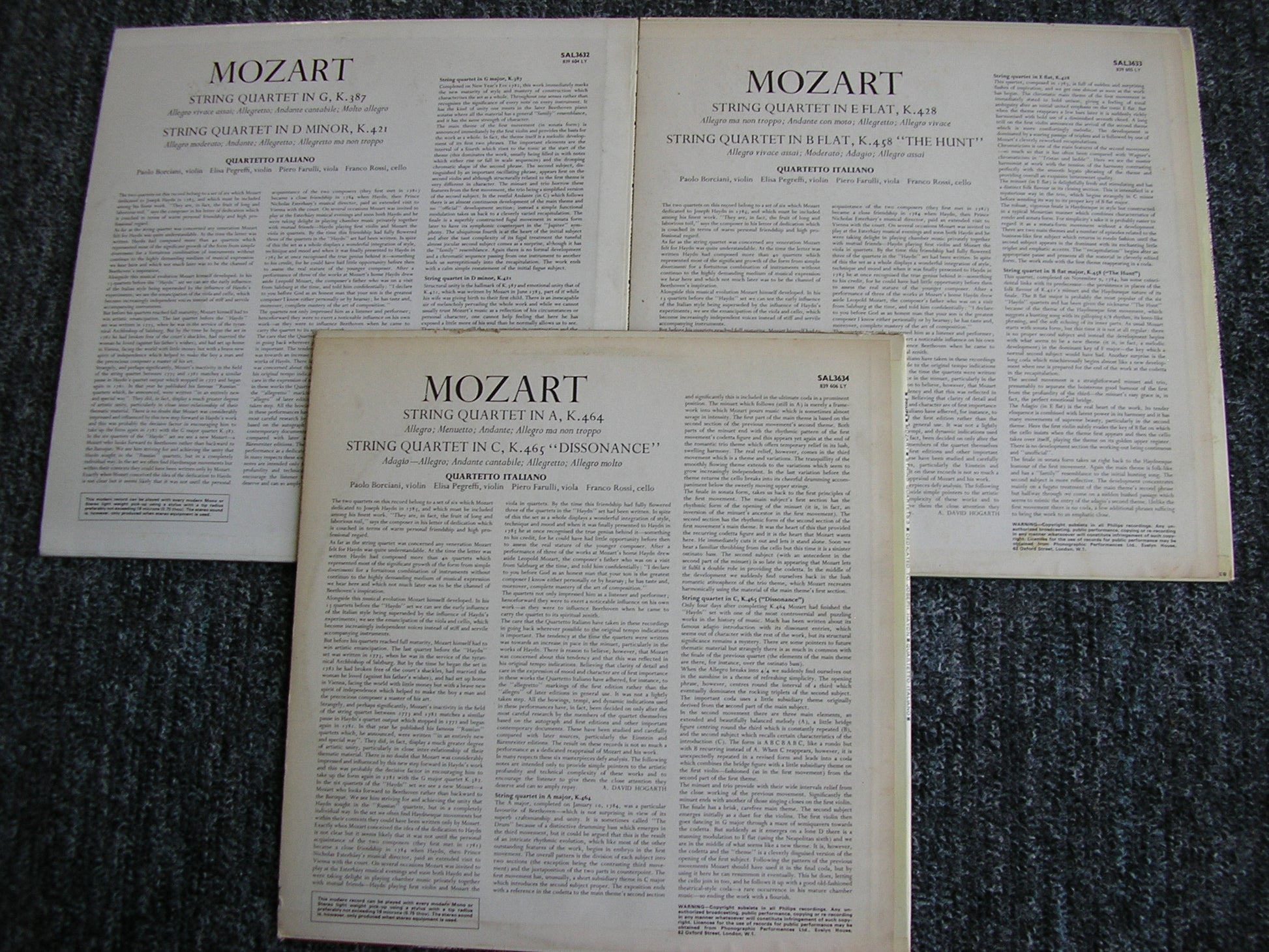 SAL 3632 / 3633 / 3634  MOZART: STRING QUARETS K387 / K421 / K428 / K458 / K464 / K465    QUARTETTO ITALIANO