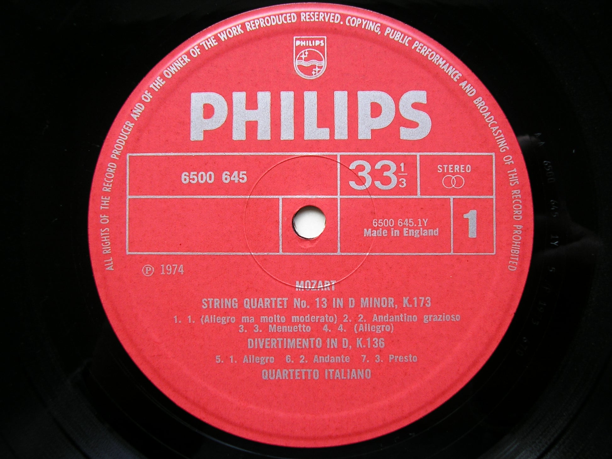 6500 645 MOZART: STRING QUARTET K 173 / THREE DIVERTIMENTI / ADAGIO & FUGUE      QUARTETTO ITALIANO
