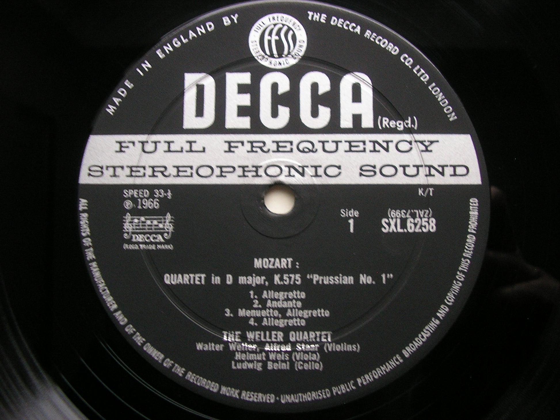 MOZART: STRING QUARTETS K575 in D & K590 in F THE WELLER QUARTET SXL 6258