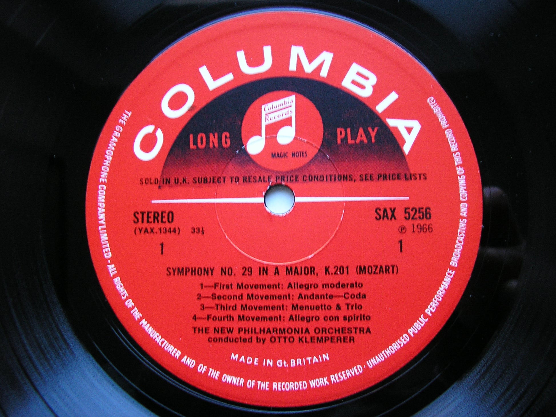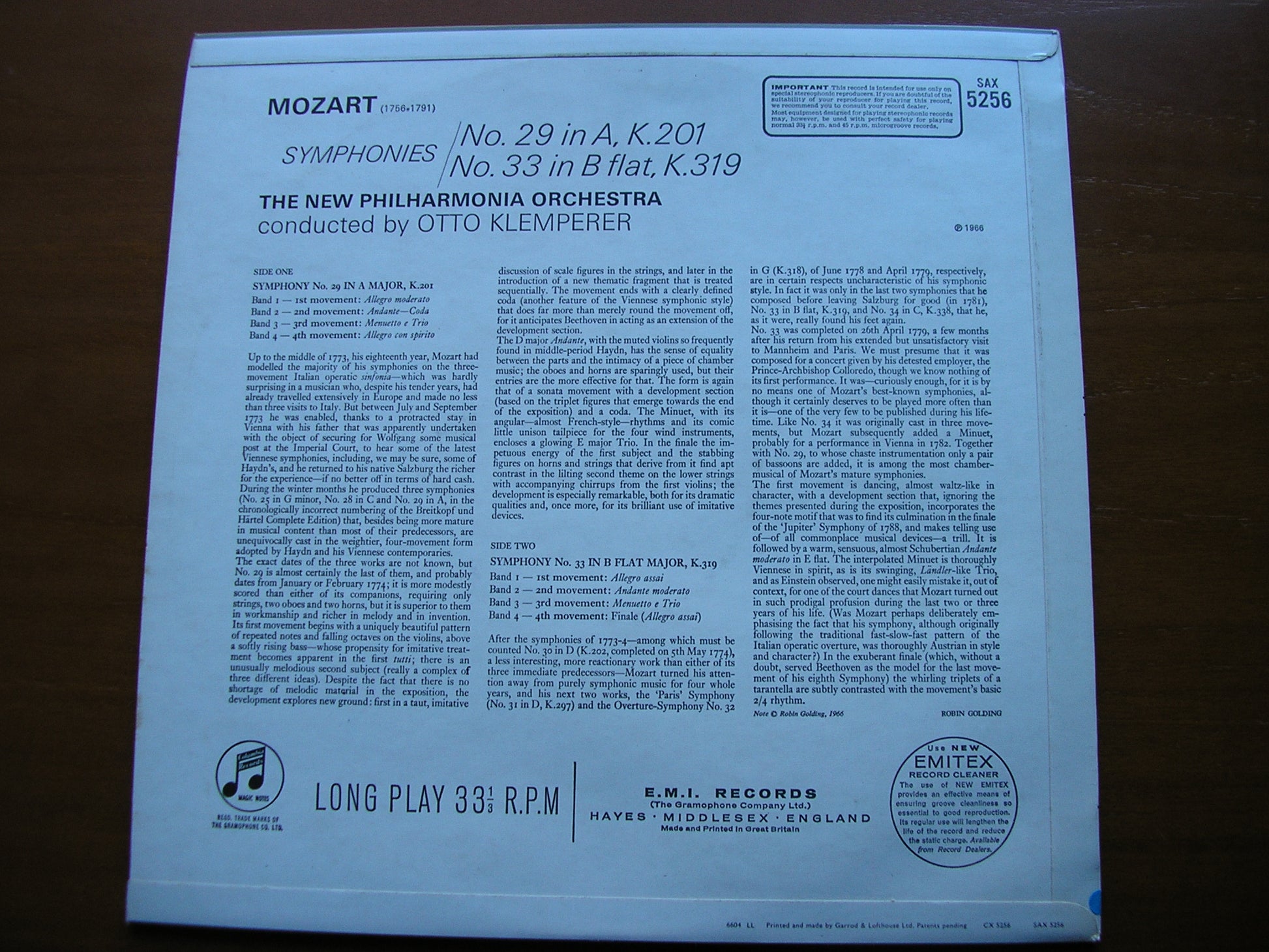 SAX 5256  MOZART: SYMPHONIES Nos. 29 & 33     OTTO KLEMPERER / NEW PHILHARMONIA ORCHESTRA