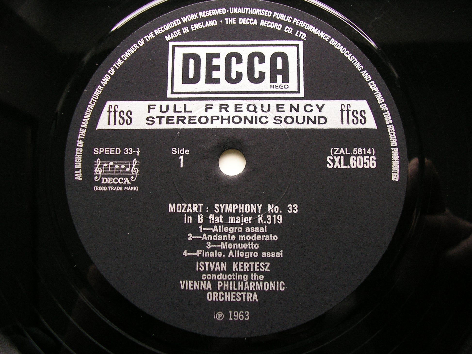 SXL 6056  MOZART: SYMPHONIES Nos. 33 & 39   ISTVAN KERTESZ / VIENNA PHILHARMONIC ORCHESTRA