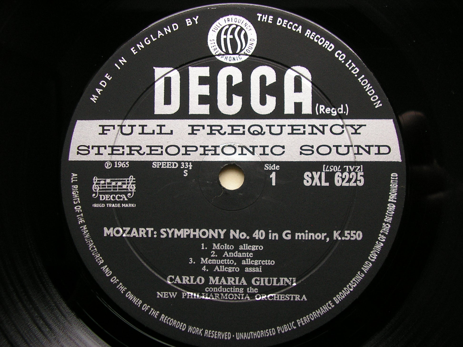SXL 6225 MOZART: SYMPHONIES Nos. 40 & 41 CARLO MARIA GIULINI / NEW PHILHARMONIA ORCHESTRA