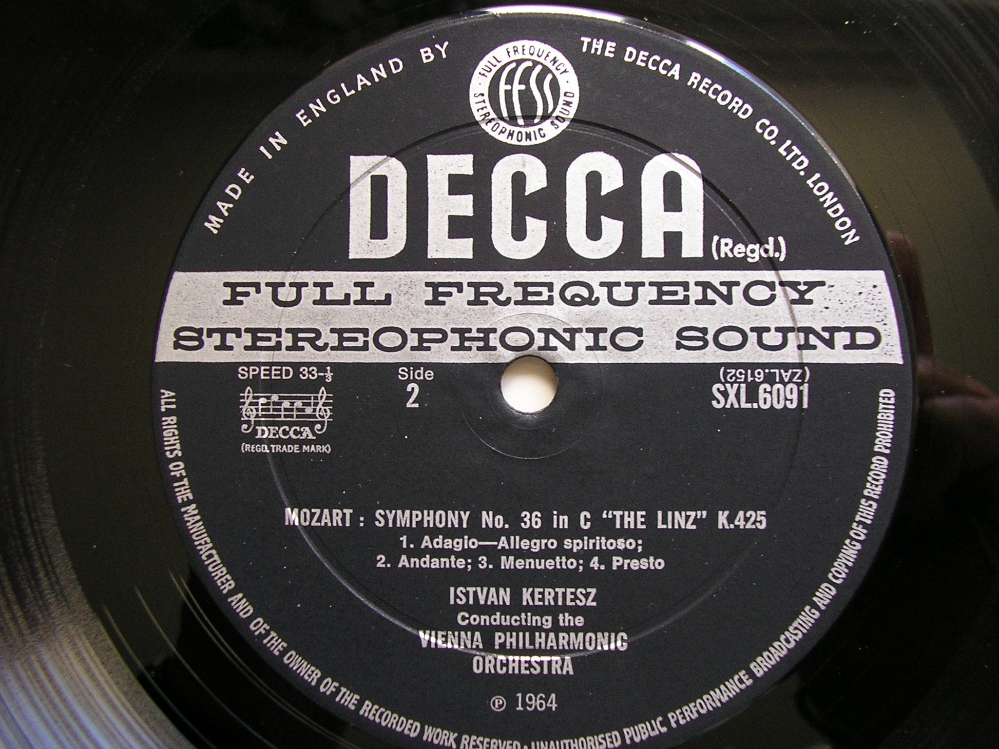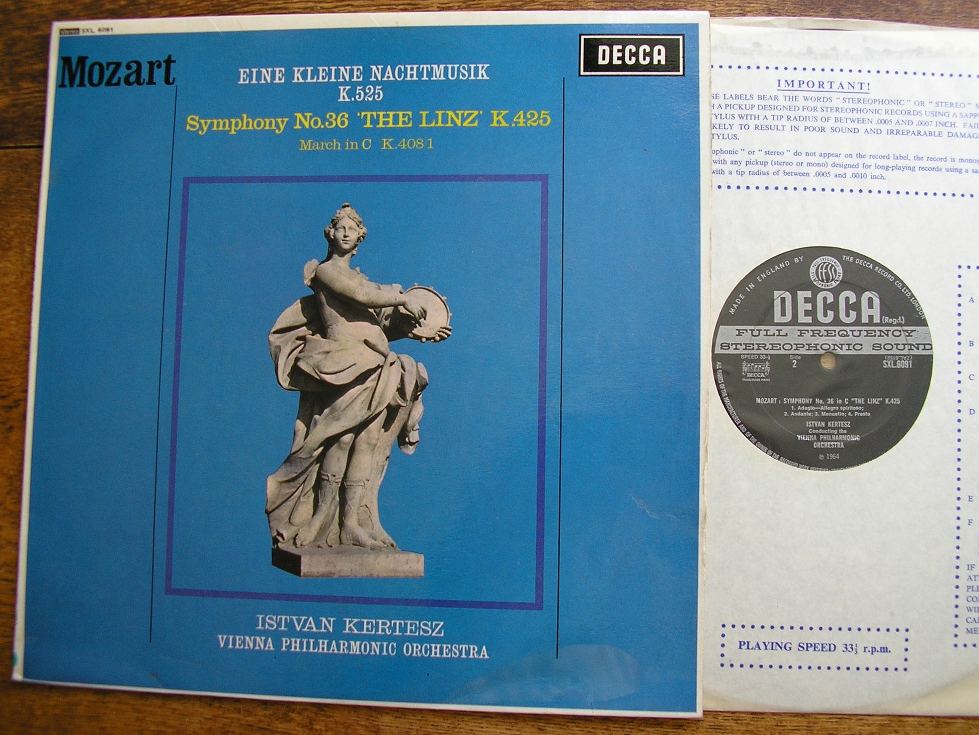 SXL 6091  MOZART: SYMPHONY No. 36 'Linz' K425 / EINE KLEINE NACHTMUSIK K525 / MARCH in C K408 No. 1     ISTVAN KERTESZ / VIENNA PHILHARMONIC ORCHESTRA