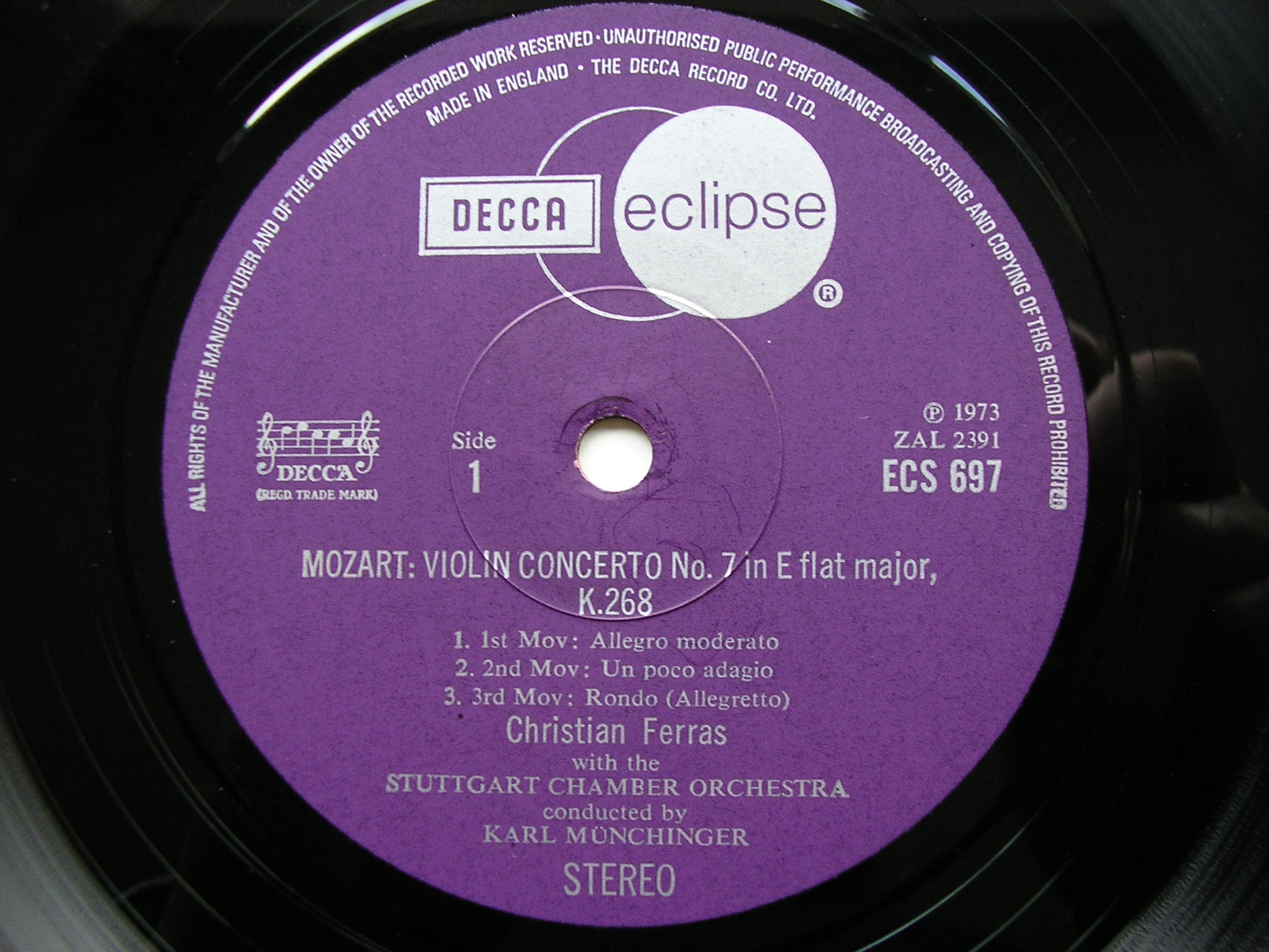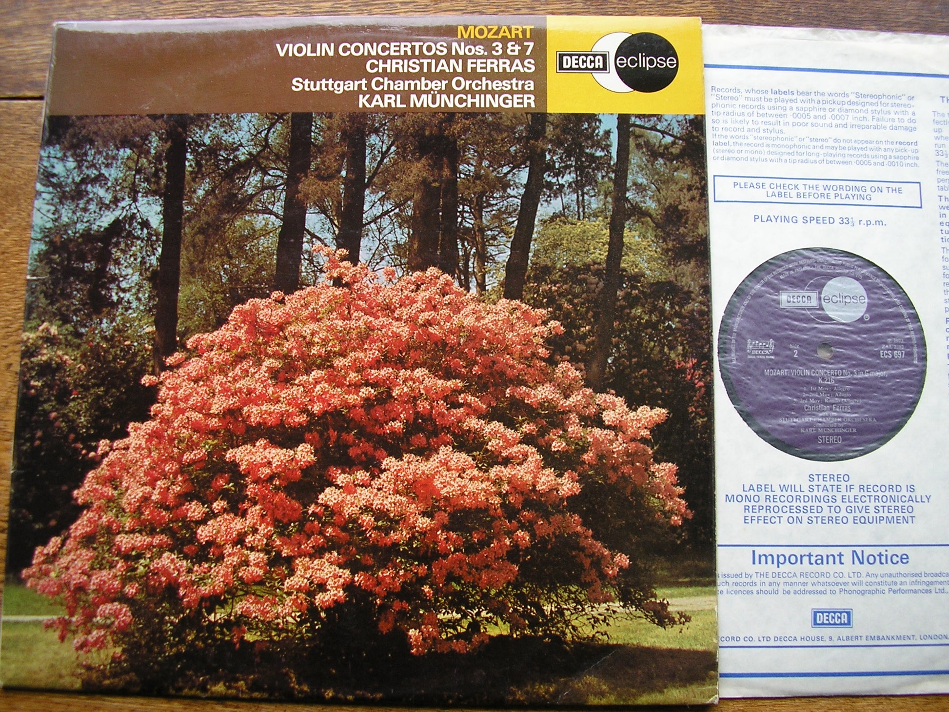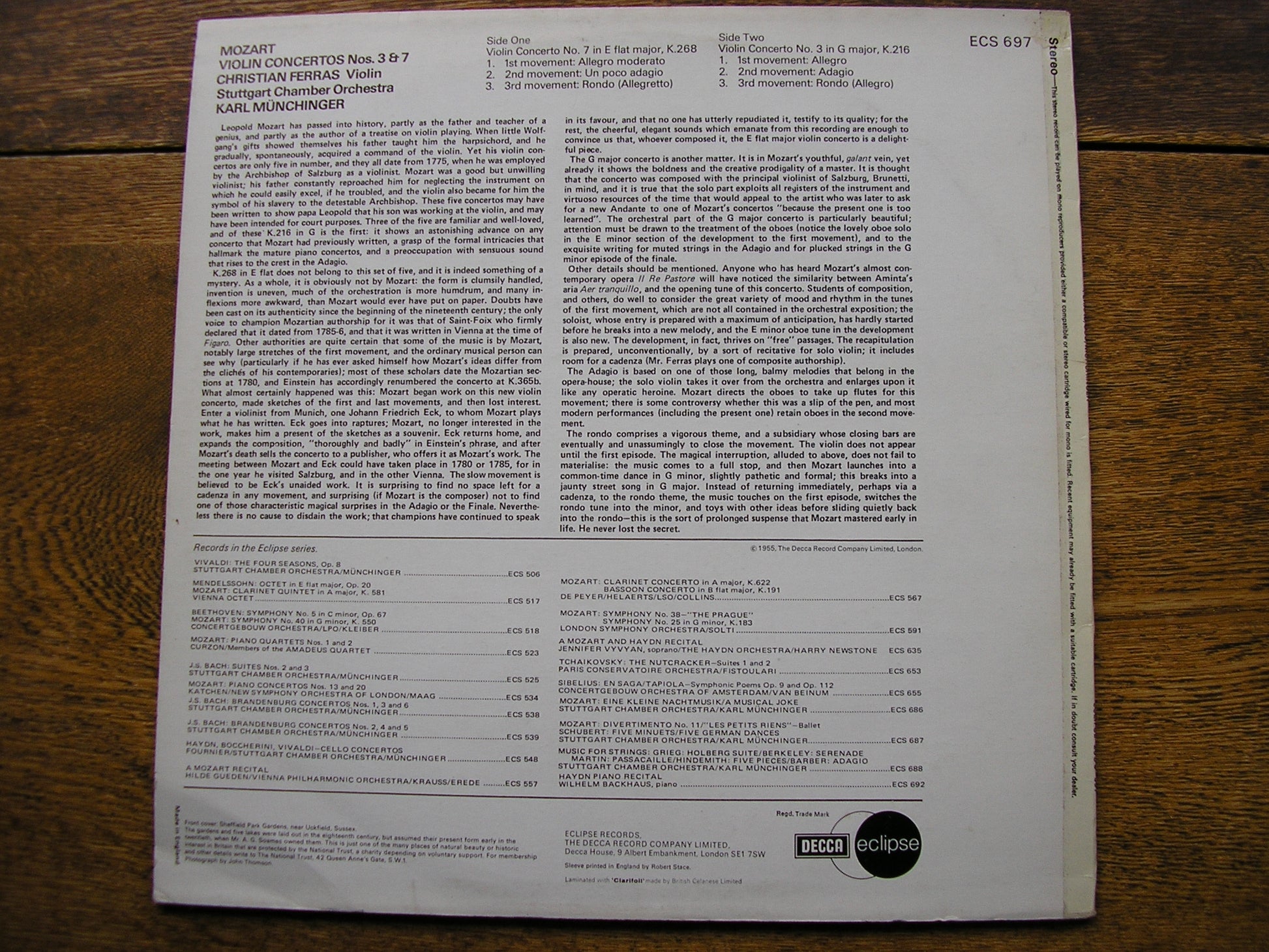 ECS 697  MOZART: VIOLIN CONCERTOS  No. 3 in E K216 & No.7 in G K268   CHRISTIAN FERRAS / STUTTGART CHAMBER ORCHESTRA / KARL MUNCHINGER