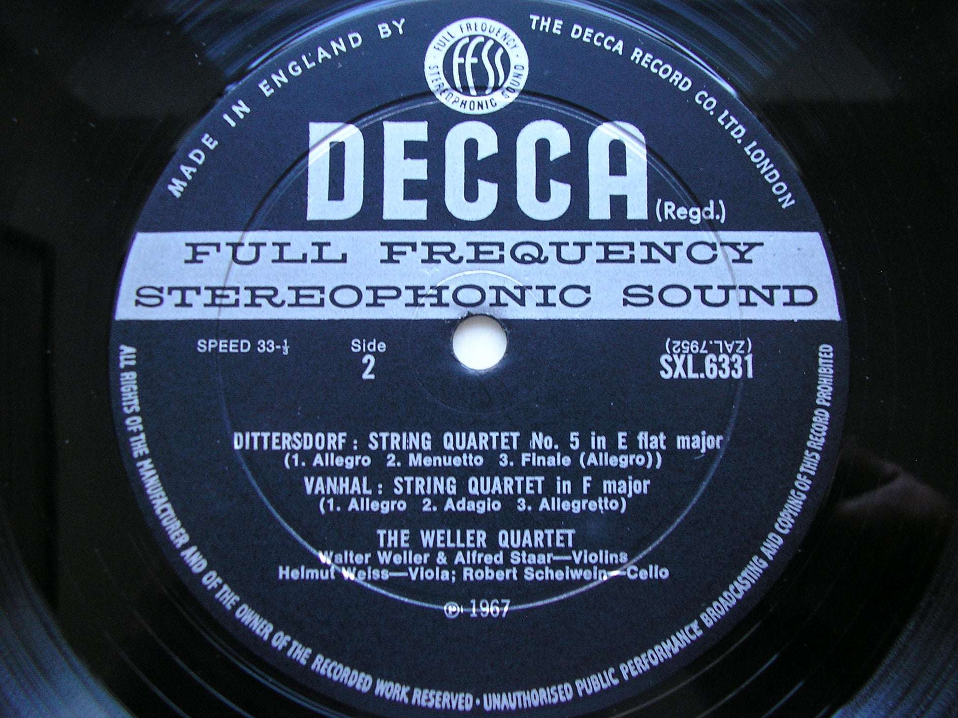 SXL 6331  STRING QUARTETS : DITTERSDORF in E / HAYDN in D / MOZART in G / VANHAL in F     THE WELLER QUARTET