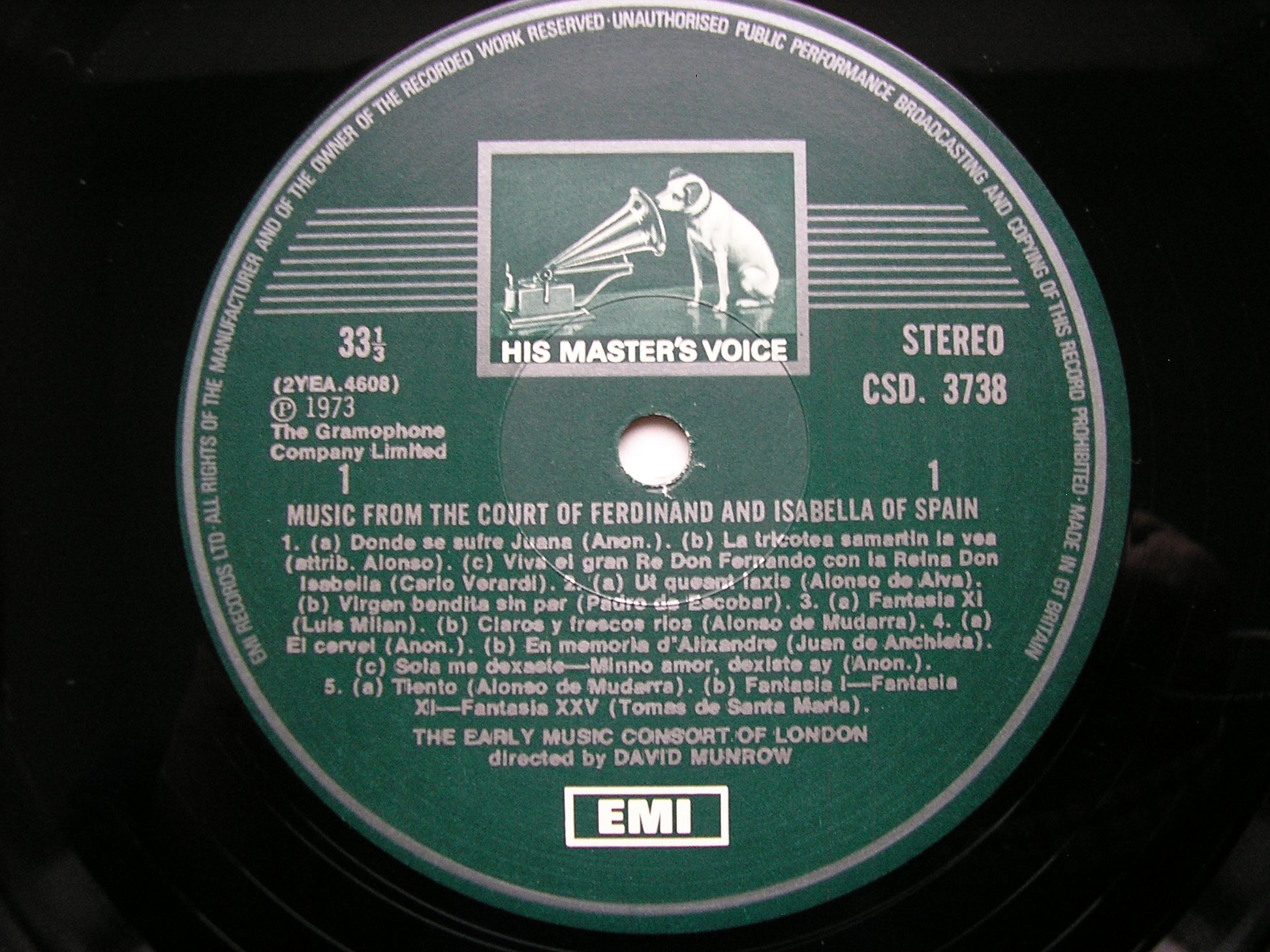 CSD 3738  MUSIC FOR FERDINAND & ISABELLA: ALONSO / VERARDI / DE ALVA / ESCOBAR / DE MILAN / DE MUDARRA / DE SANTA MARIA / ORTIZ / DEL ENCINA / CABEZON      SOLOISTS / THE EARLY MUSIC CONSORT OF LONDON / DAVID MUNROW