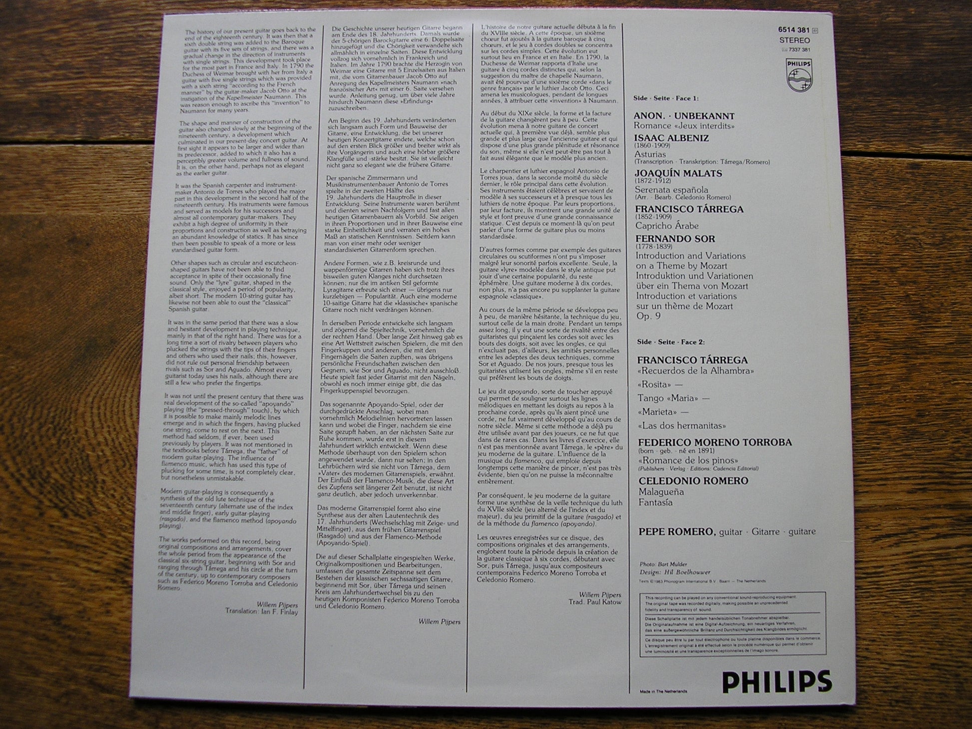 6514 381  MUSIC FOR GUITAR: TORROBA / SOR / MALATS / ROMERO / TARREGA / ALBENIZ     PEPE ROMERO