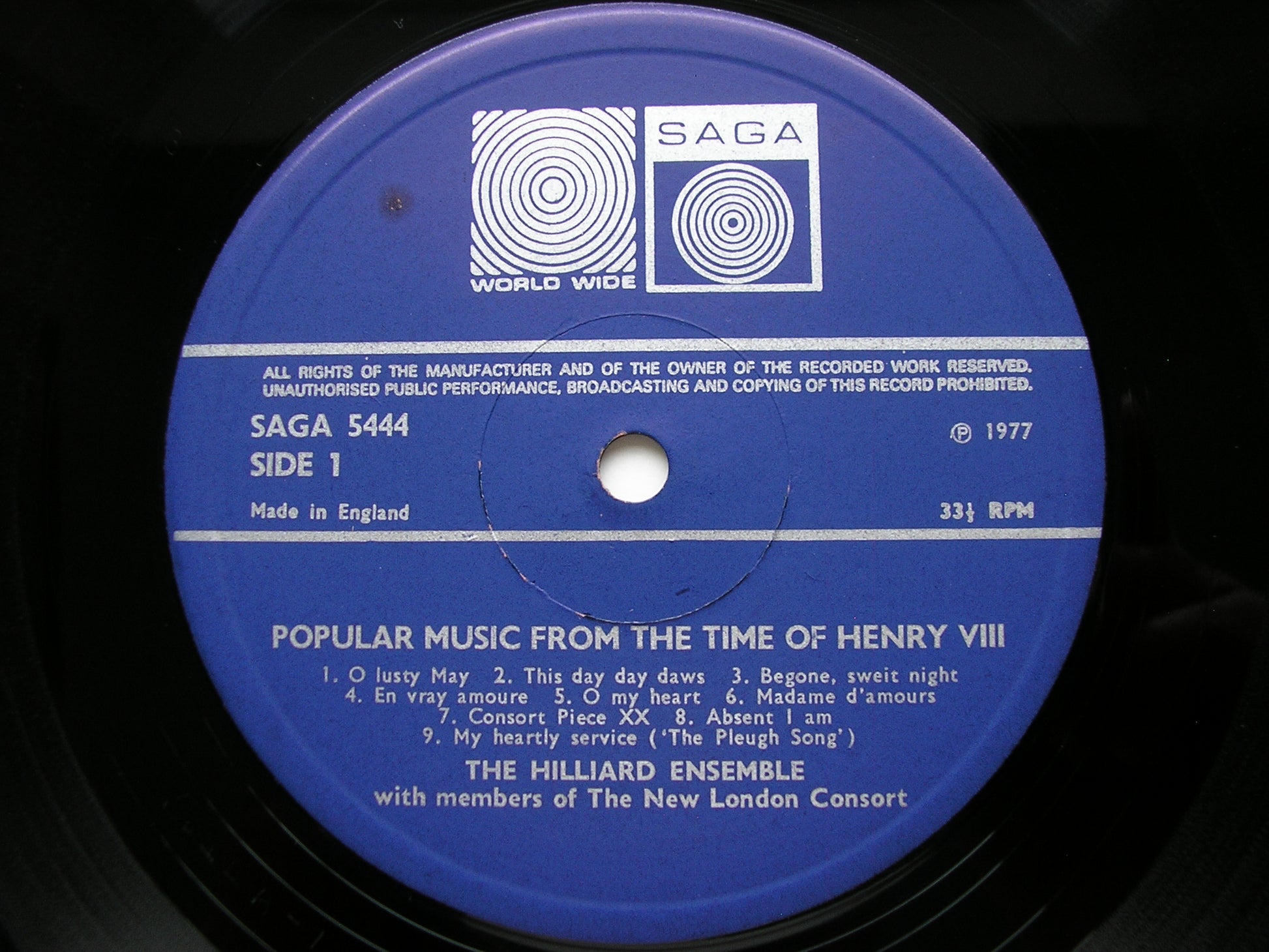 SAGA 5444  MUSIC FROM THE TIME OF HENRY VIII       THE HILLIARD ENSEMBLE / NEW LONDON CONSORT