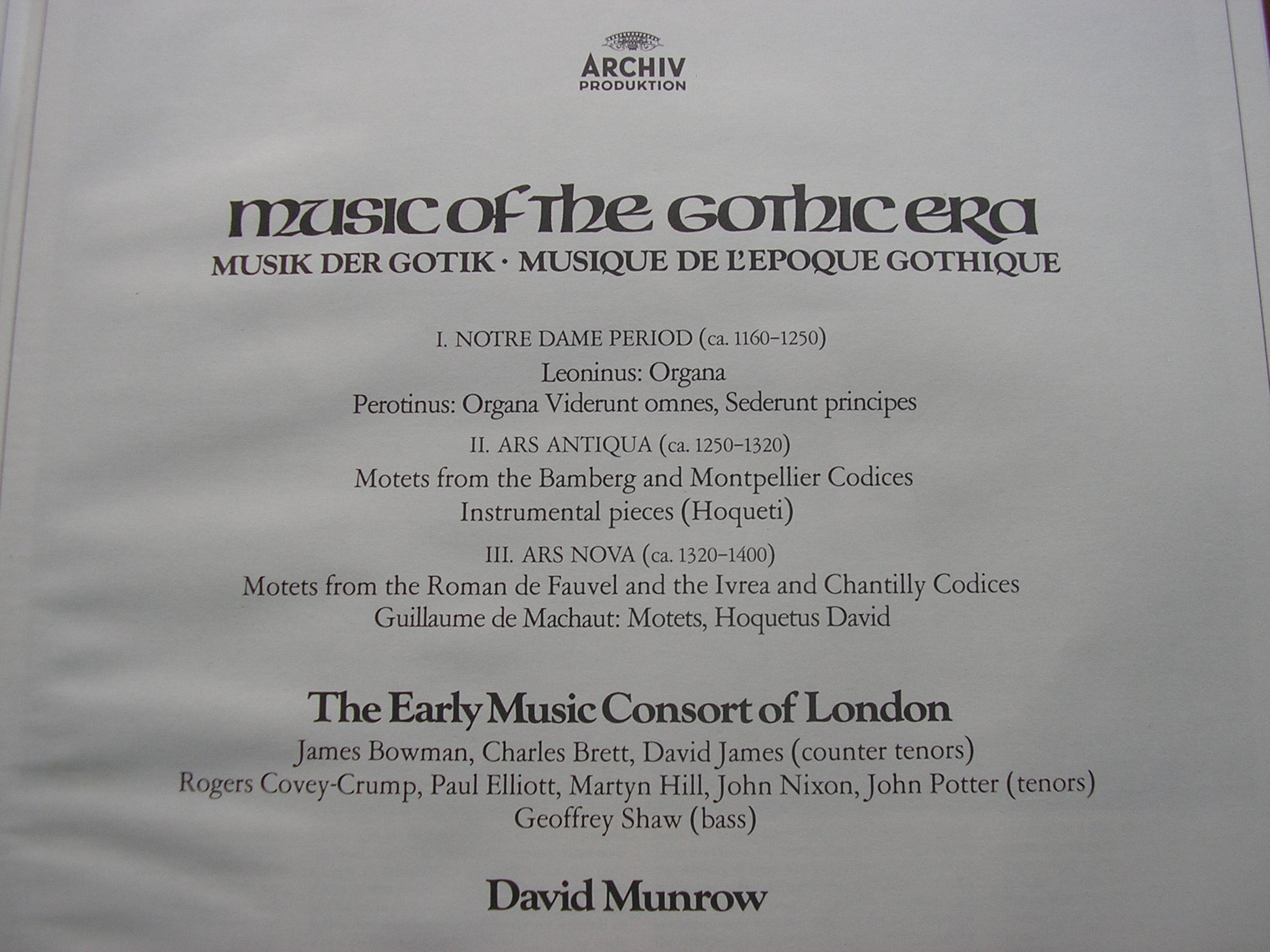 2723 045  MUSIC OF THE GOTHIC ERA     THE EARLY MUSIC CONSORT OF LONDON / DAVID MUNROW