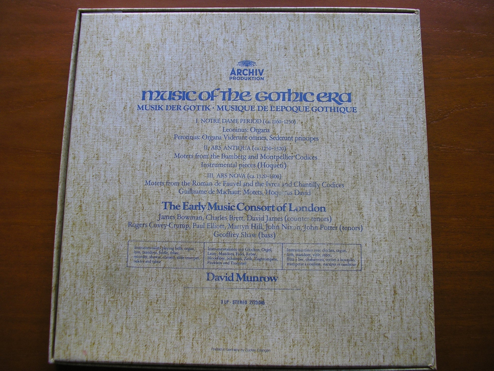 MUSIC OF THE GOTHIC ERA 1160 - 1400 THE EARLY MUSIC CONSORT OF LONDON / MUNROW 2723 045
