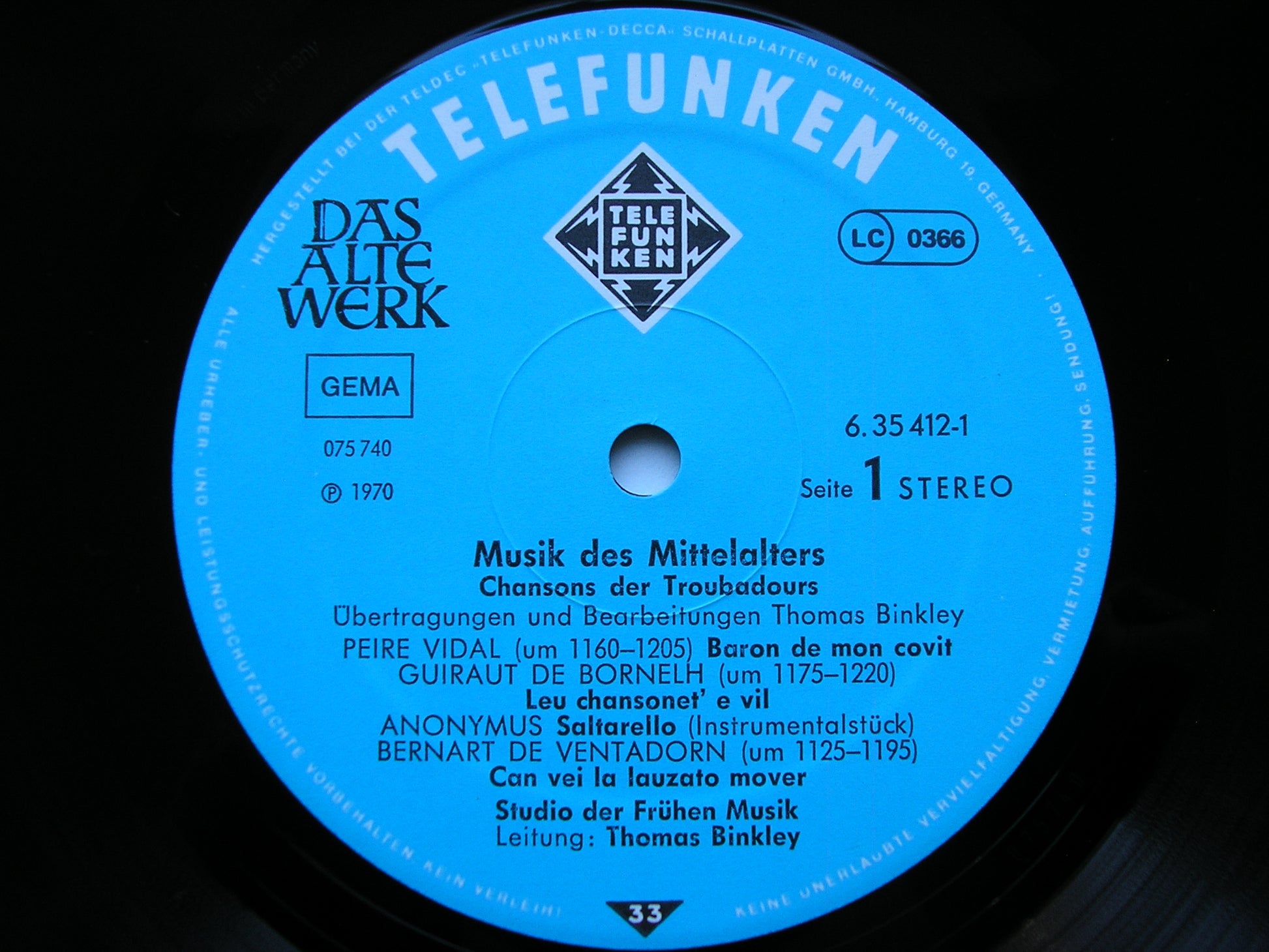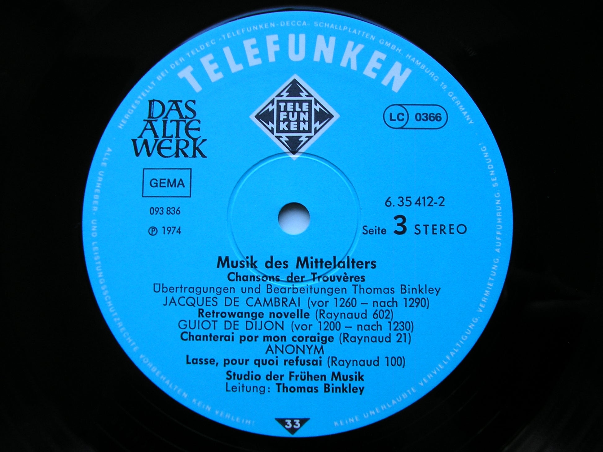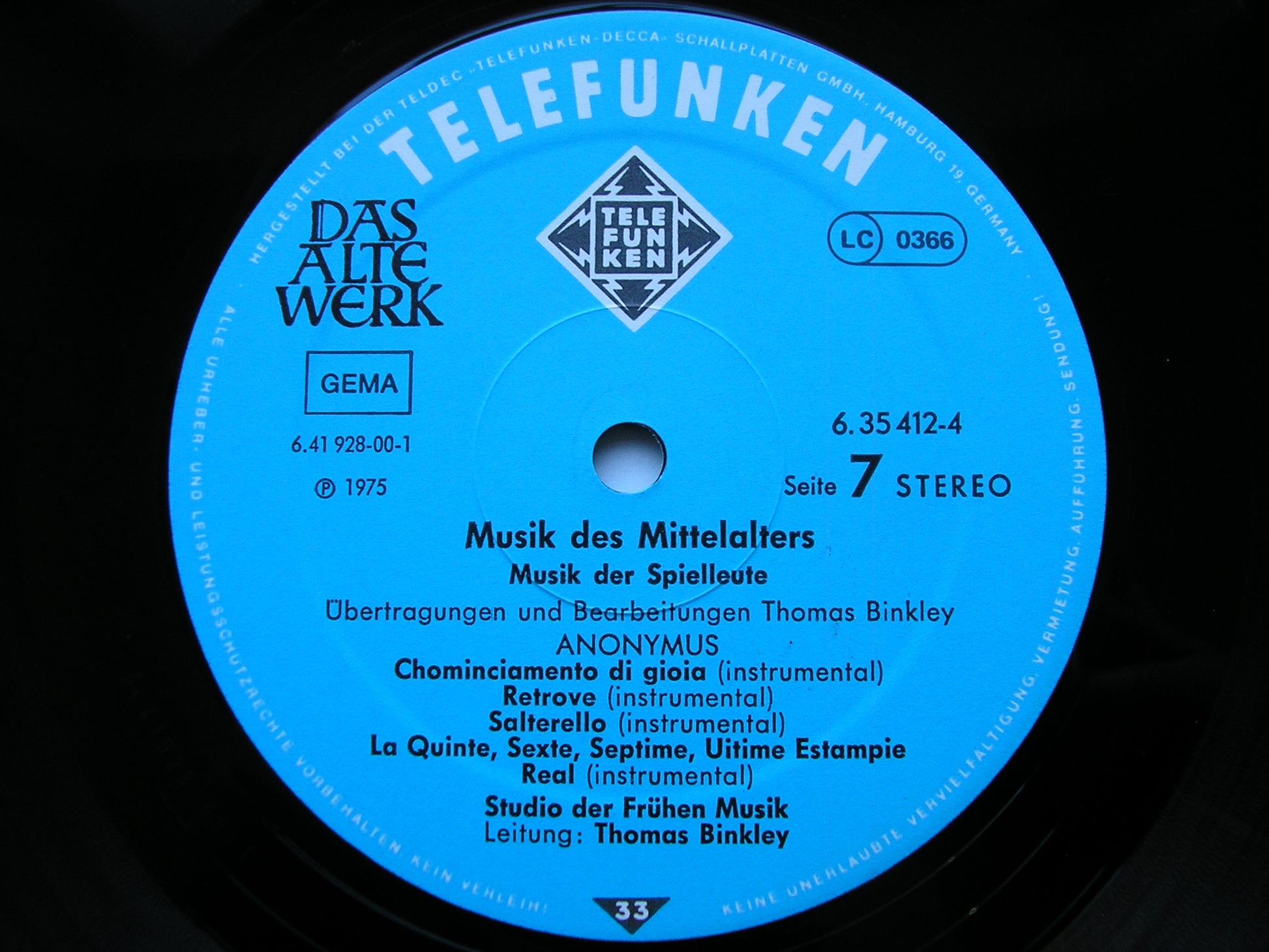 6.35412  MUSIC OF THE MIDDLE AGES   STUDIO DER FRUHEN MUSIK / THOMAS BINKLEY / KAMMERCHOR WALTHER VON DER VOGELWEIDE / OTHMAR COSTA