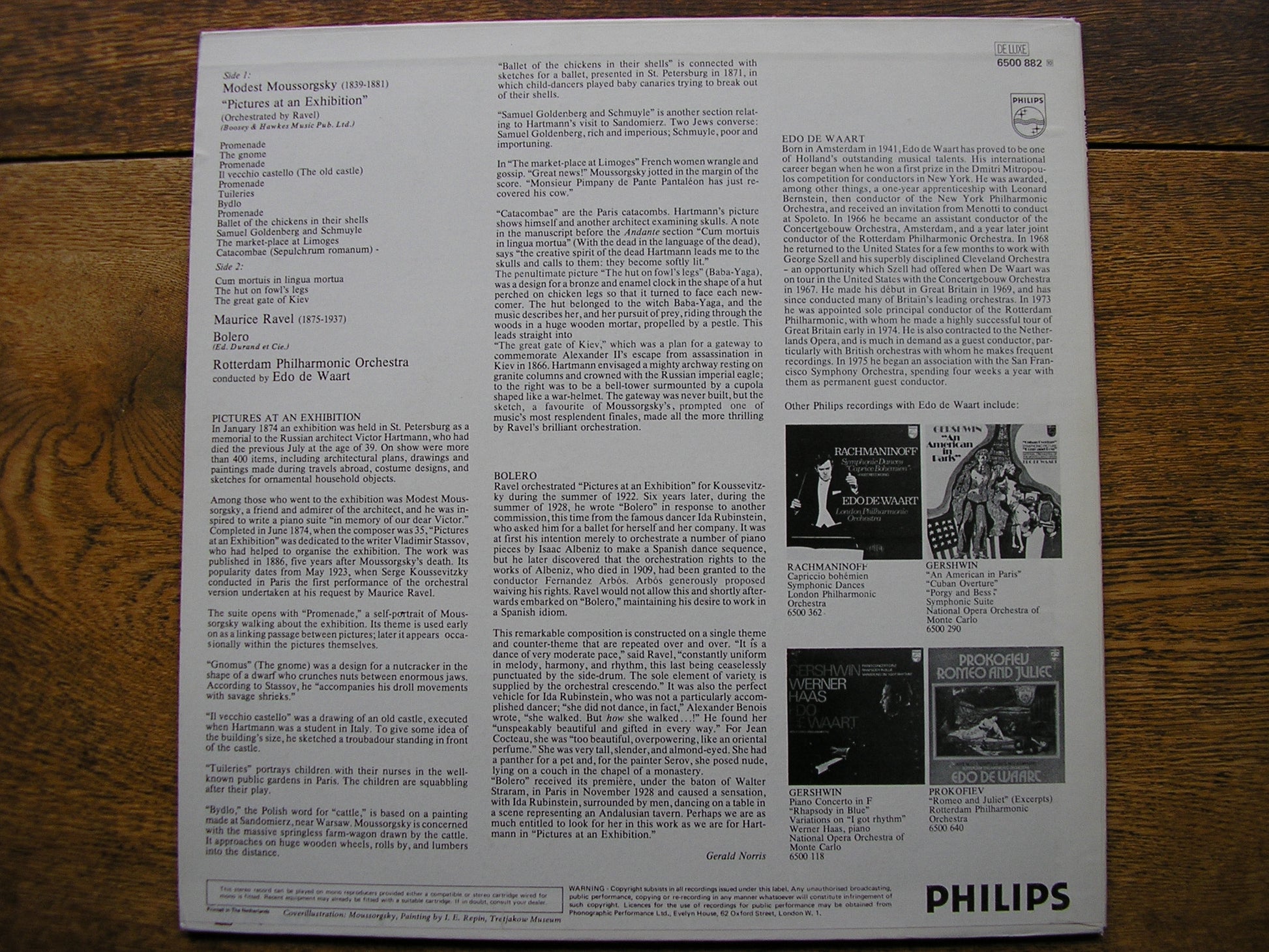 6500 882  MUSSORGSKY: PICTURES AT AN EXHIBITION / RAVEL: BOLERO   EDO DE WAART / ROTTERDAM PHILHARMONIC ORCHESTRA