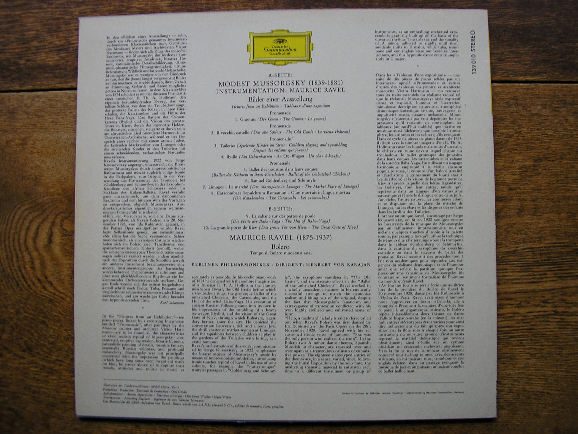 139 010  MUSSORGSKY: PICTURES AT AN EXHIBITION / RAVEL: BOLERO  HERBERT VON KARAJAN / BERLIN PHILHARMONIC ORCHESTRA