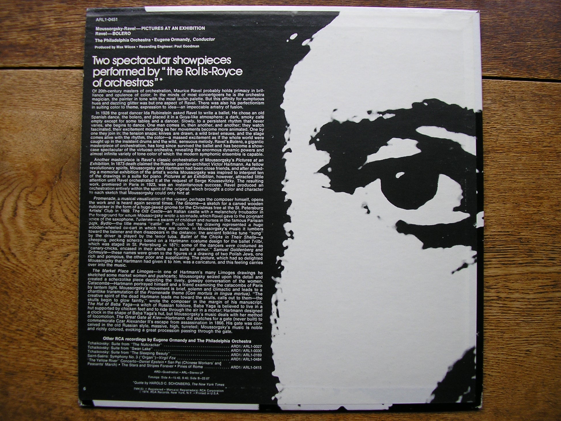 ARL1-0451  MUSSORGSKY: PICTURES AT AN EXHIBITION / RAVEL: BOLERO    EUGENE ORMANDY / PHILADELPHIA ORCHESTRA
