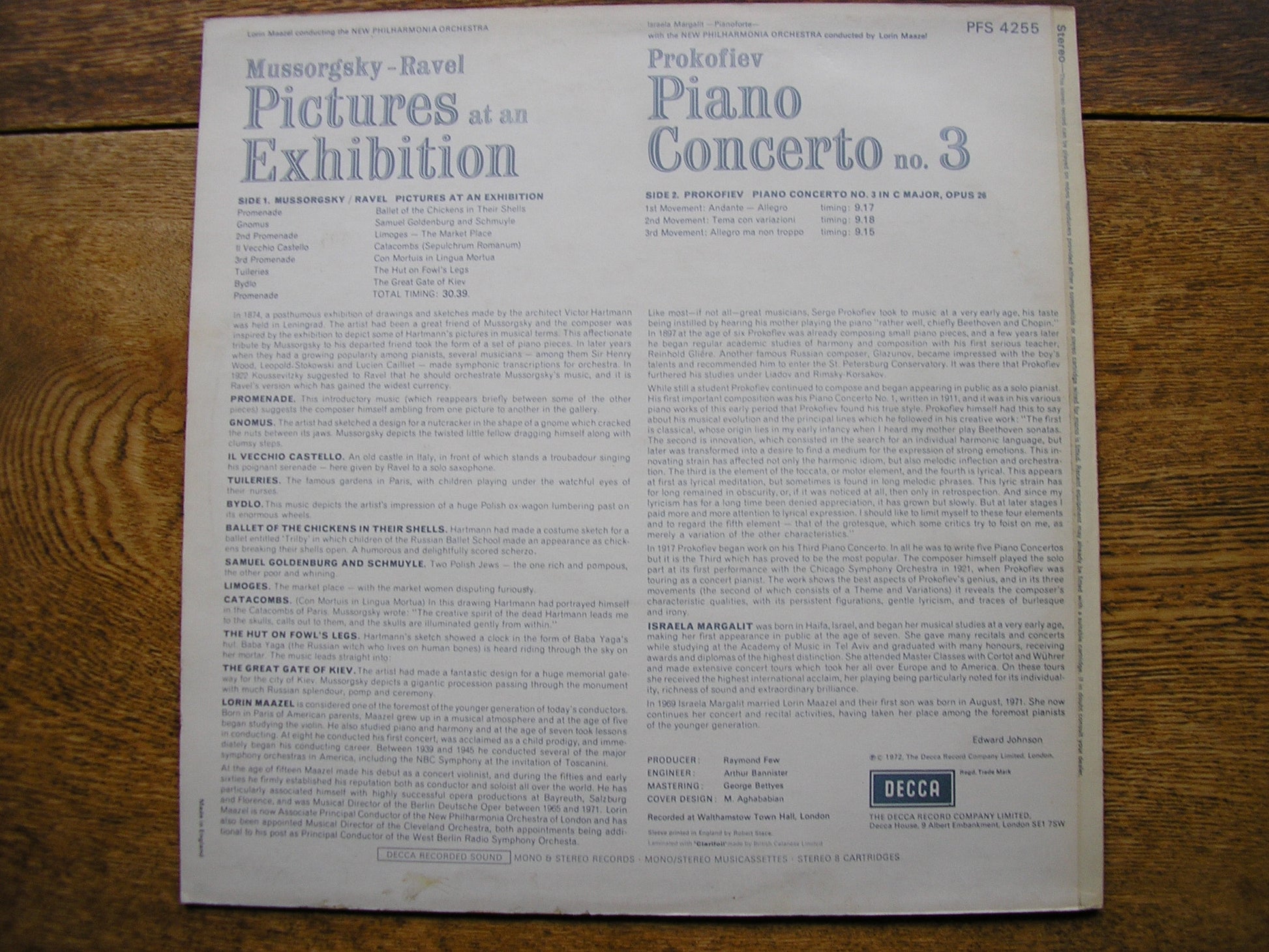 PFS 4255  MUSSORGSKY: PICTURES AT AN EXHIBITION / PROKOFIEV: PIANO CONCERTO No. 3  ISRAELA MARGALIT / NEW PHILHARMONIA ORCHESTRA / LORIN MAAZEL