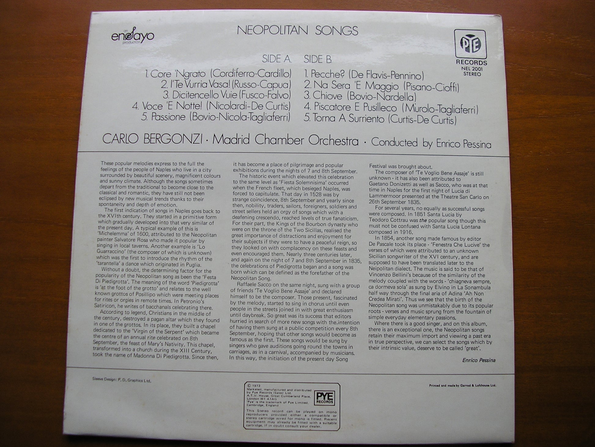 NEAPOLITAN SONGS: CARDILLO / DE CURTIS / CAPUA / TAGLIFERRI / CIOFFI / FALVO CARLO BERGONZI / MADRID CHAMBER ORCHESTRA / PESSINA NEL 2001