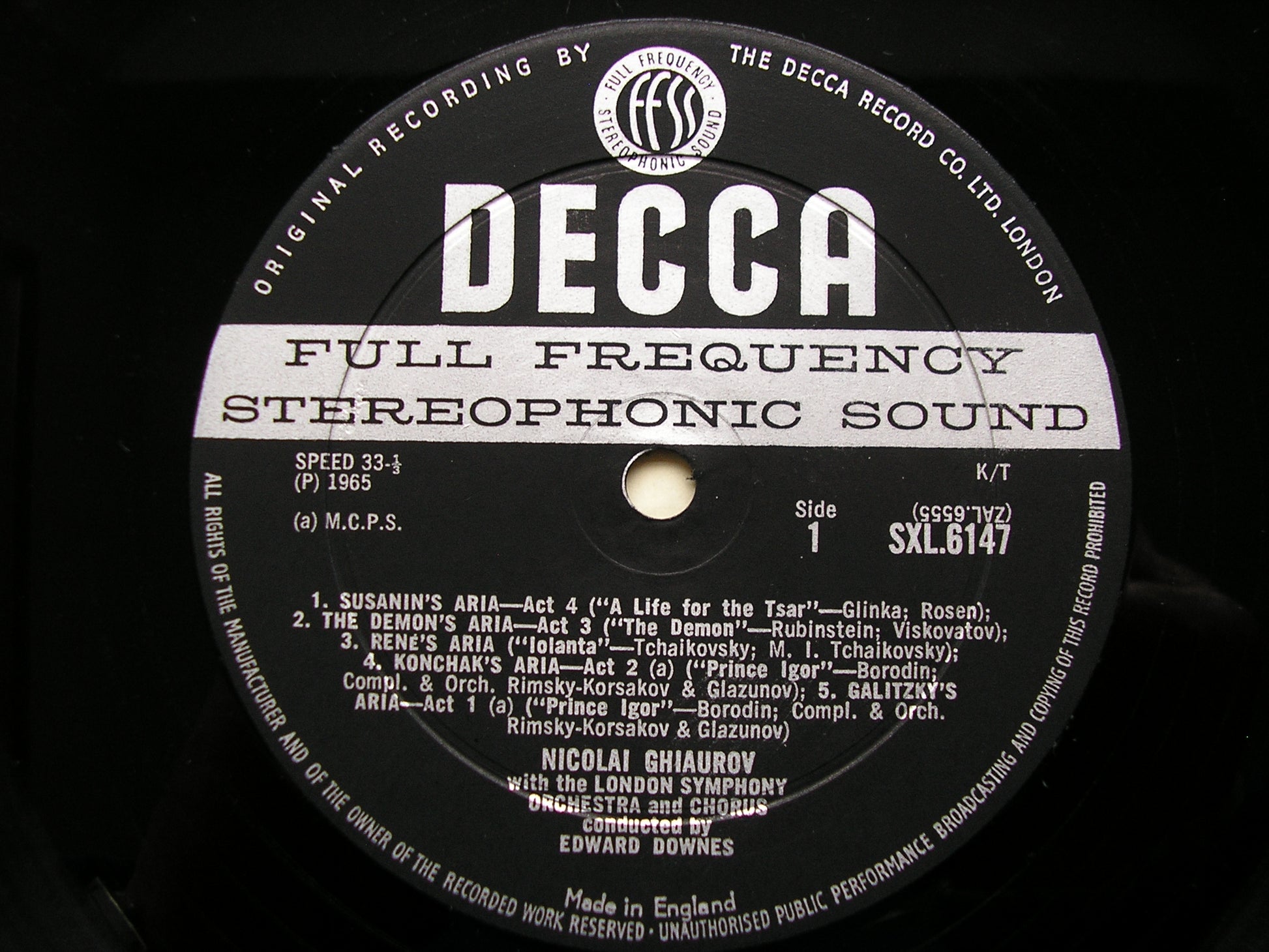 SXL 6147 TCHAIKOVSKY / BORODIN / GLINKA / RUBINSTEIN / BIZET / MEYERBEER / GOUNOD / MASSNET      NICOLAI GHIAUROV / LONDON SYMPHONY ORCHESTRA / EDWARD DOWNES