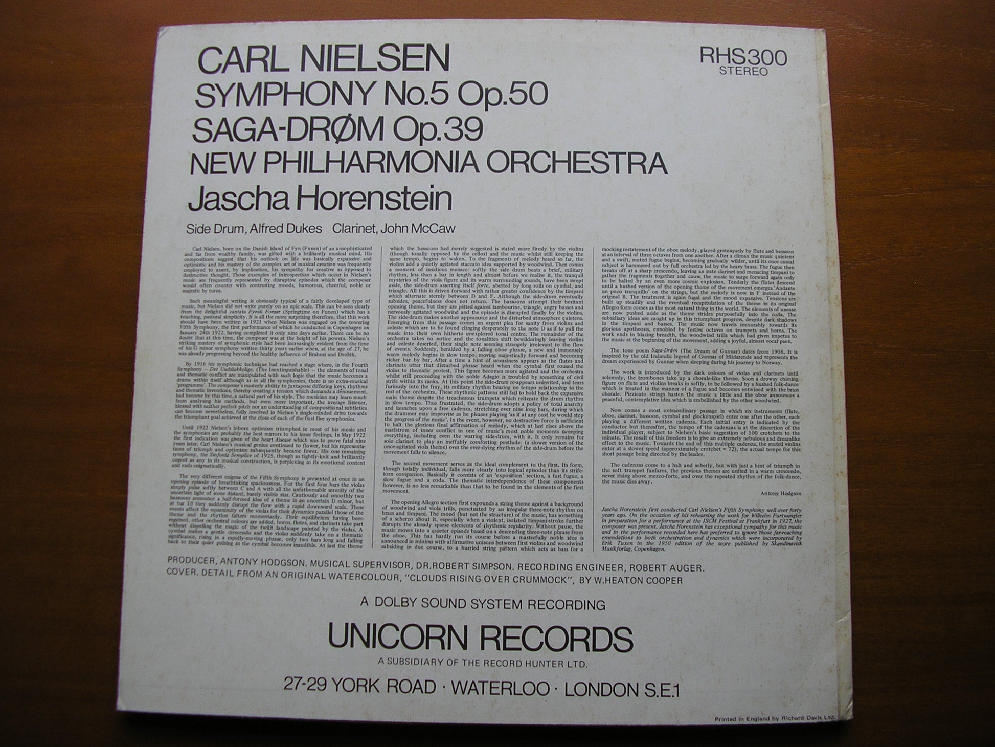RHS 300  NIELSEN: SYMPHONY No. 5 / SAGA - DROM     JASCHA HORENSTEIN / NEW PHILHARMONIA ORCHESTRA