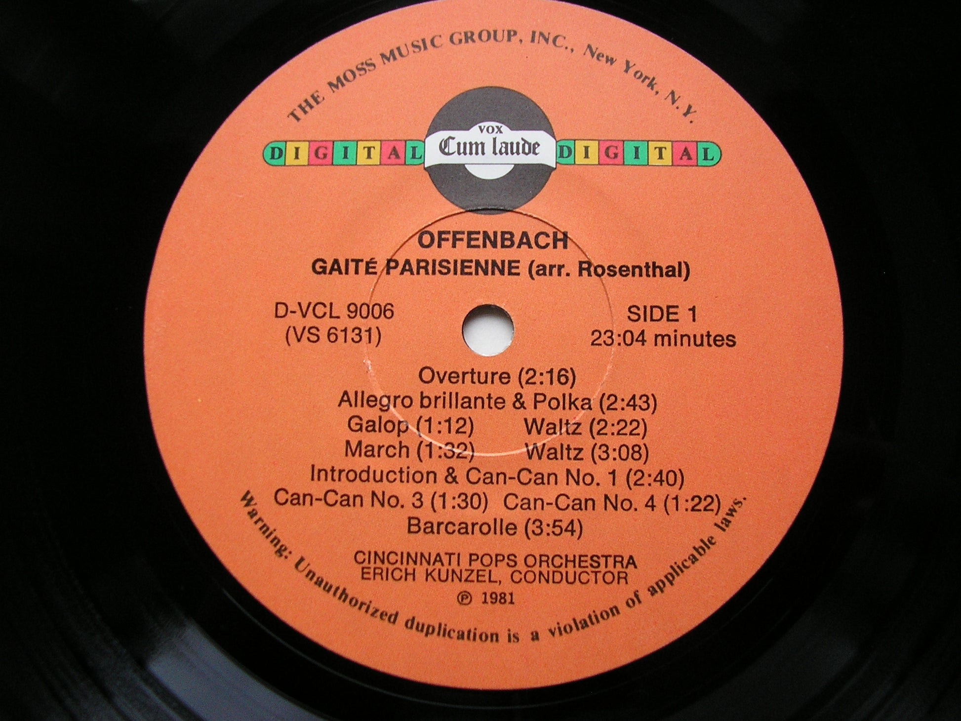 D-VCL 9006  OFFENBACH: GAITE PARISIENNE / MEYERBEER: LES PATINEURS    ERICH KUNZEL / CINCINNATI POPS ORCHESTRA