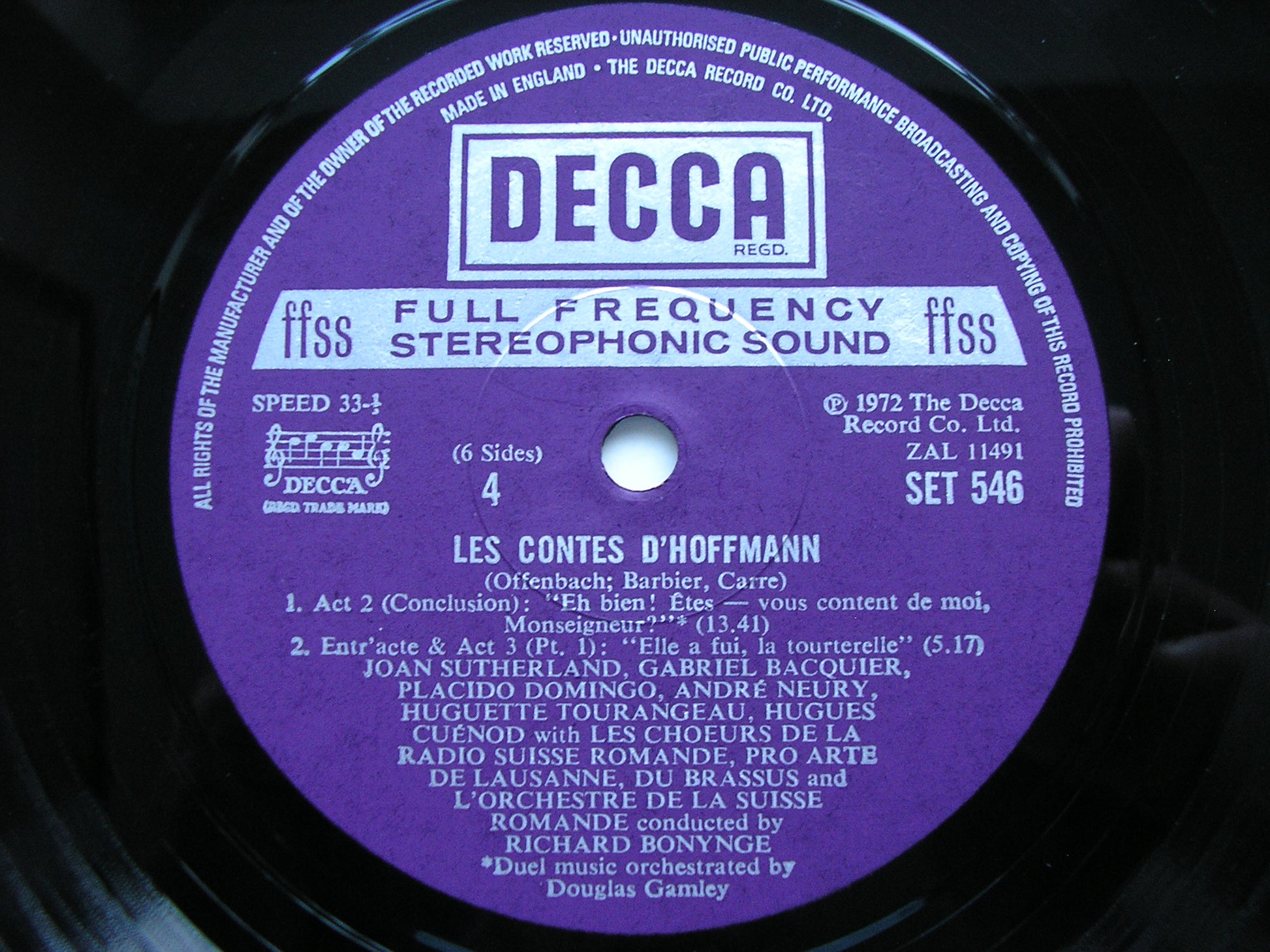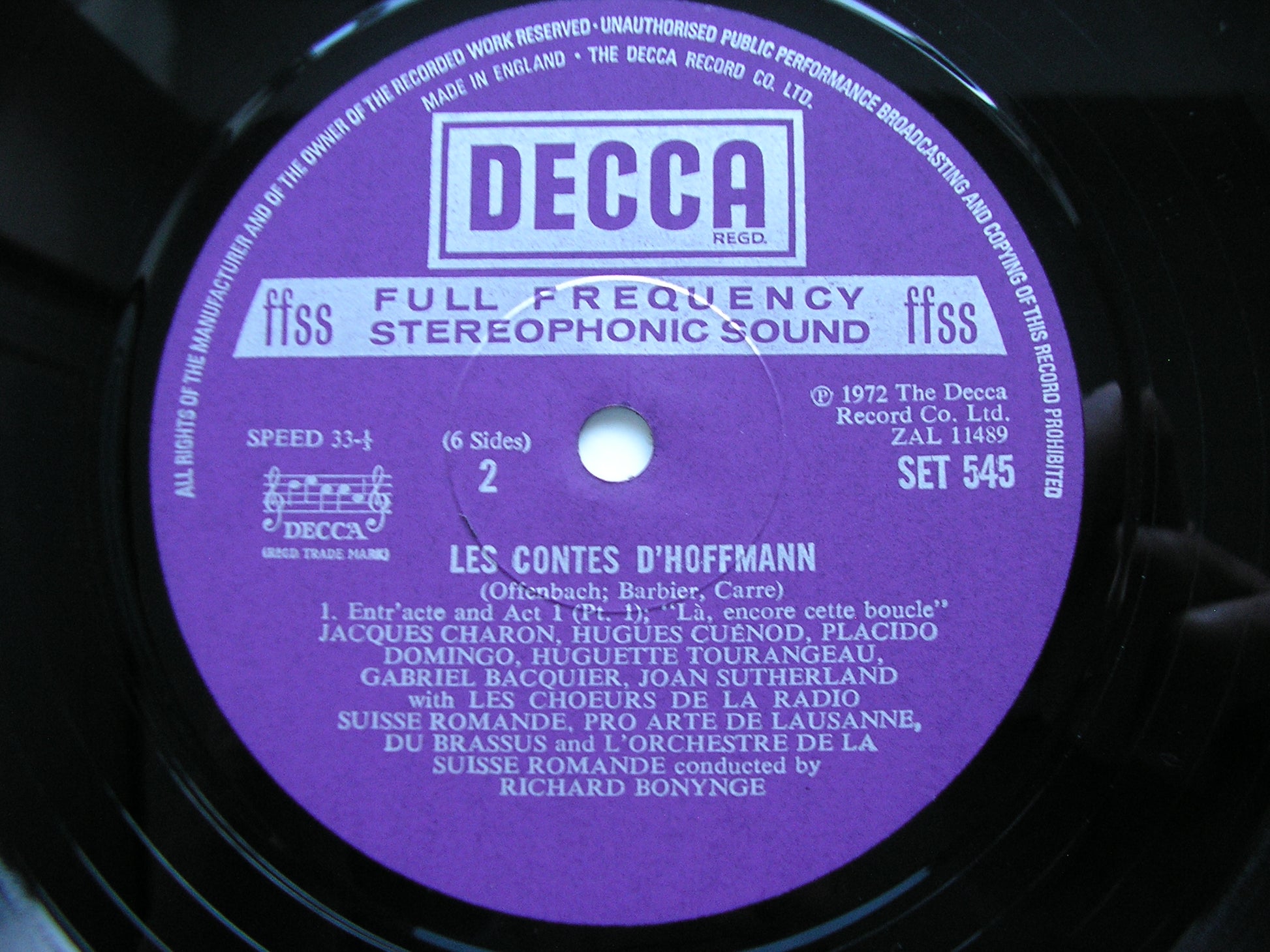 SET 545 - 547  OFFENBACH: THE TALES OF HOFFMANN     PLACIDO DOMINGO / JOAN SUTHERLAND / GABRIEL BACQUIER / SUISSE ROMANDE ORCHESTRA / RICHARD BONYNGE