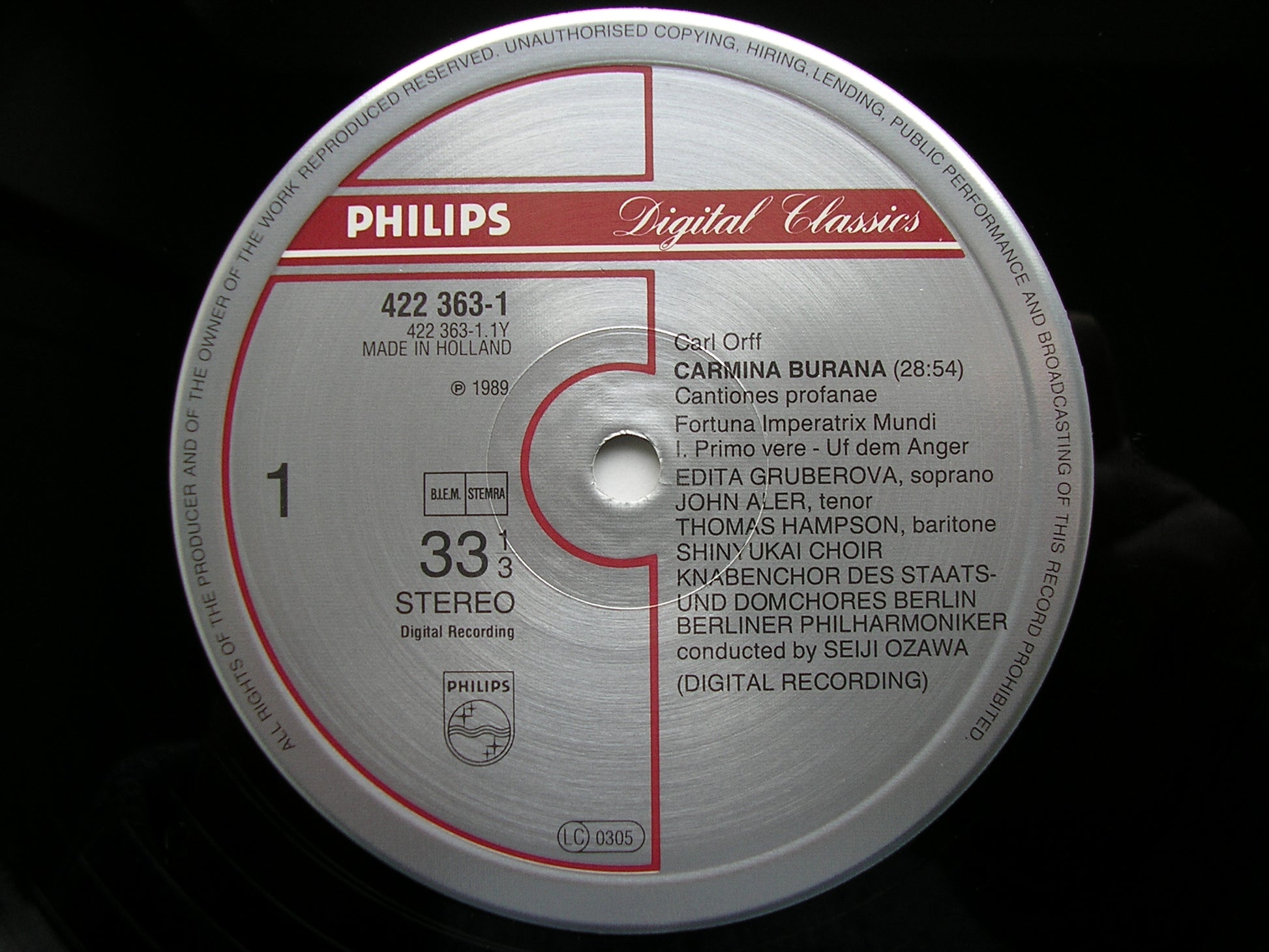 422 363  ORFF: CARMINA BURANA   EDITA GRUBEROVA / JOHN ALER / THOMAS HAMPSON / BERLIN PHILHARMONIC ORCHESTRA / SEIJI OZAWA