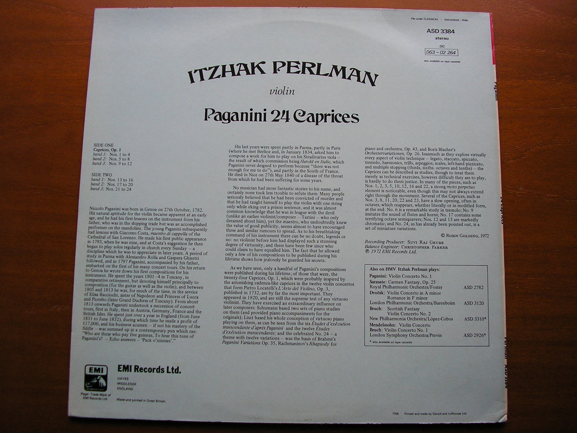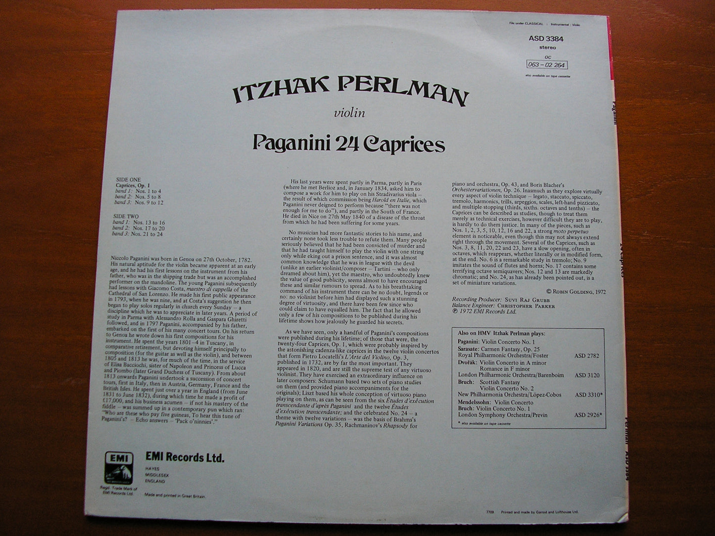 ASD 3384  PAGANINI: 24 CAPRICES    ITZHAK PERLMAN