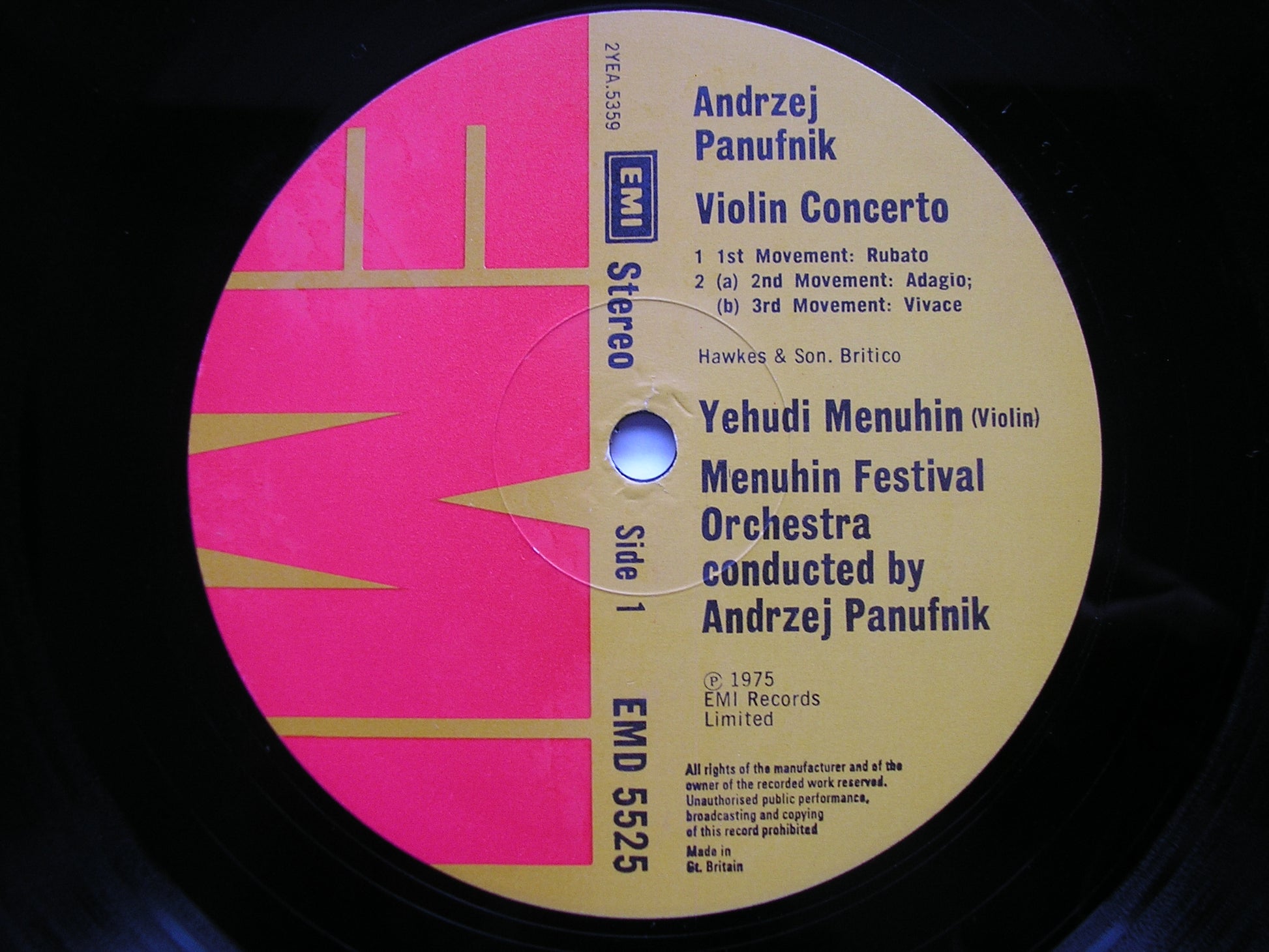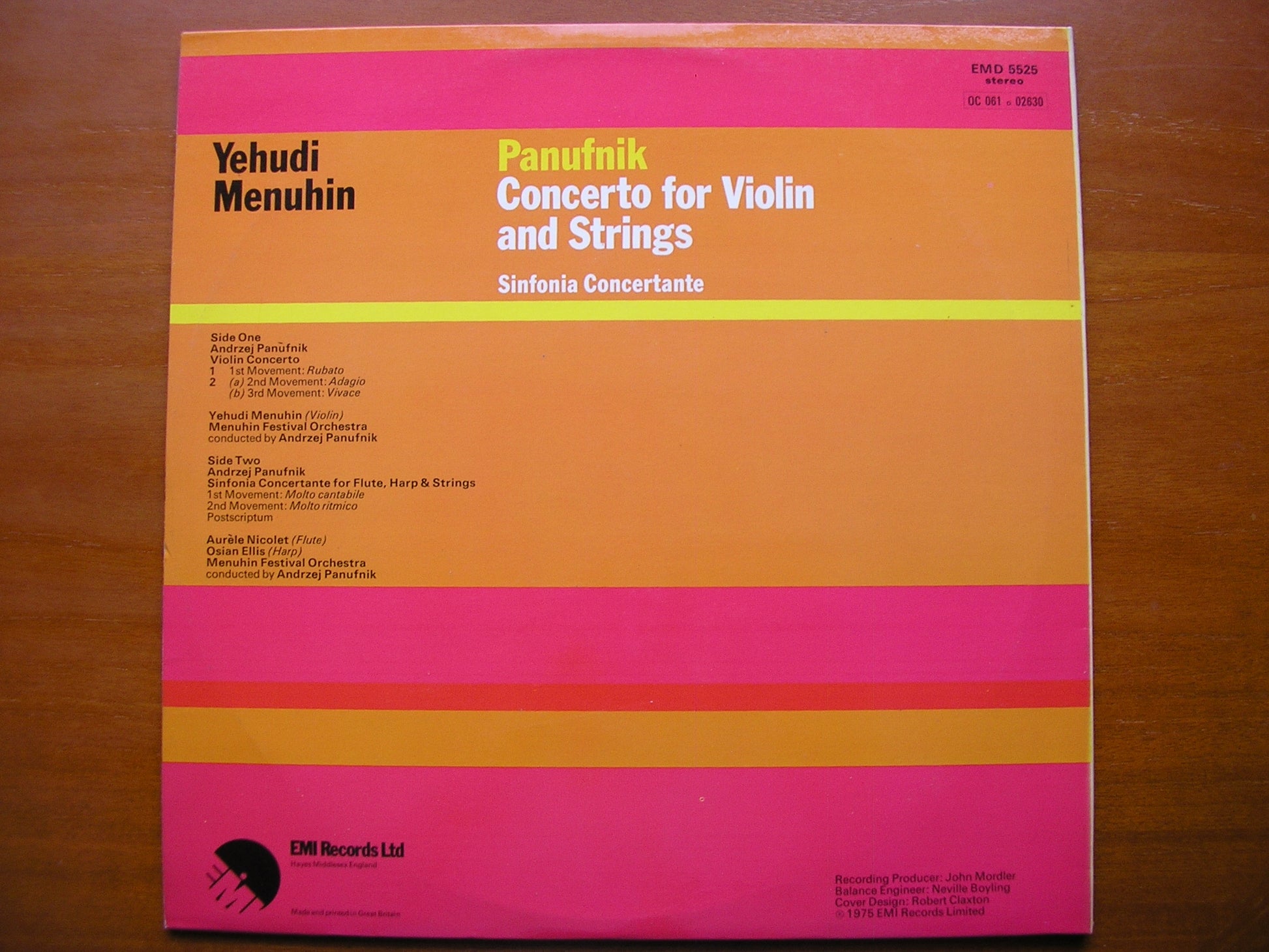 EMD 5525  PANUFNIK: VIOLIN CONCERTO / YEHUDI MENUHIN / SINFONIA CONCERTANTE / AURELE NICOLET / OSIAN ELLIS / FESTIVAL ORCHESTRA / ANDRZEJ PANUFNIK