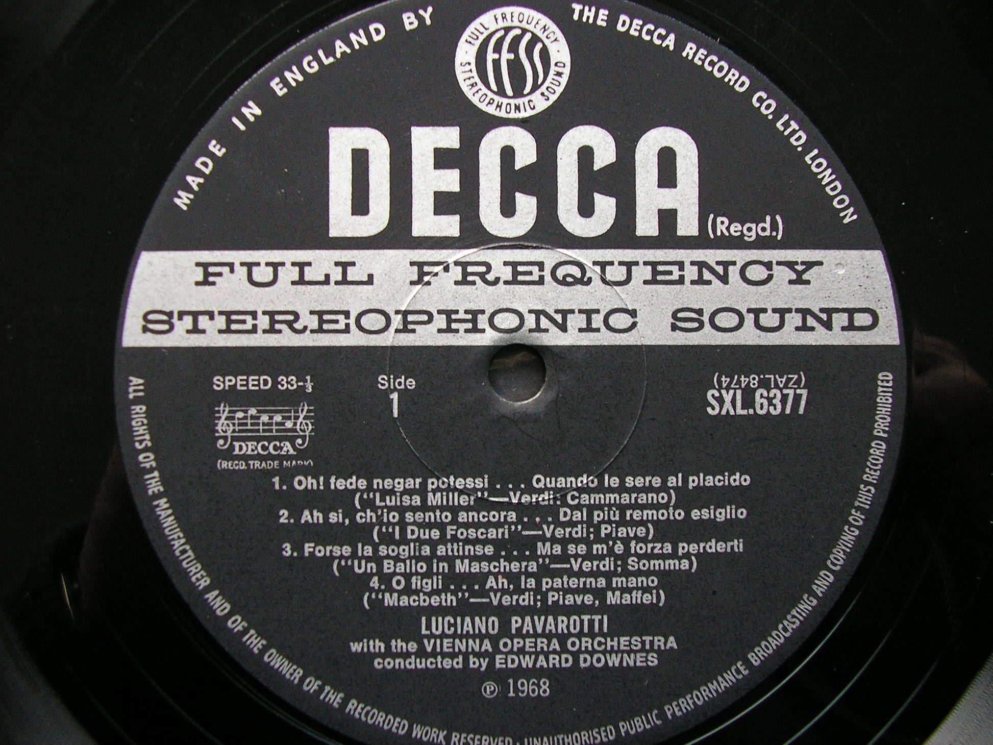 SXL 6377  PAVAROTTI SINGS ARIAS BY VERDI & DONIZETTI   EDWARD DOWNES / VIENNA OPERA ORCHESTRA