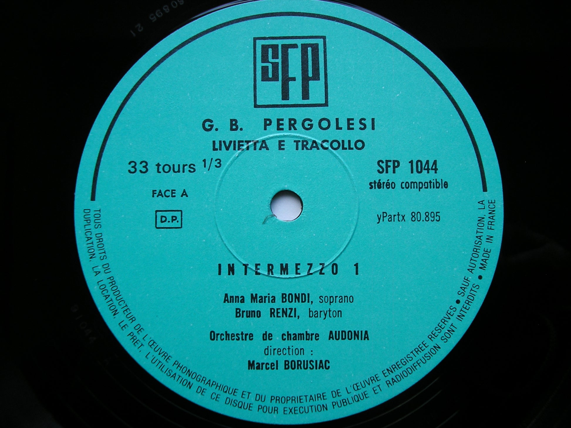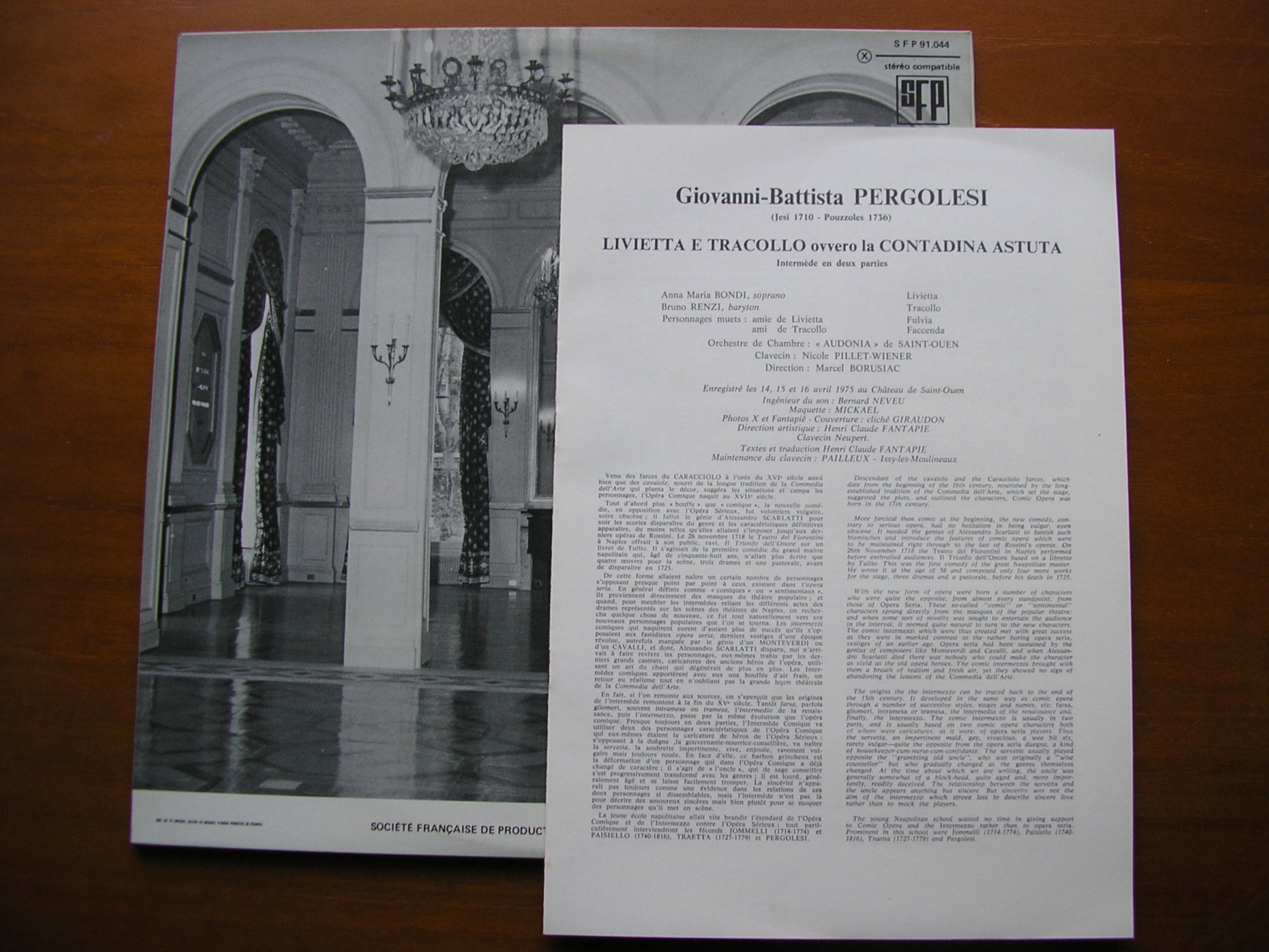 SFP 91 044  PERGOLESI: LIVIETTA E TRACCOLO      ANNA MARIA BONDI / BRUNO RENZI / AUDONIA / MARCEL BORUSIAC
