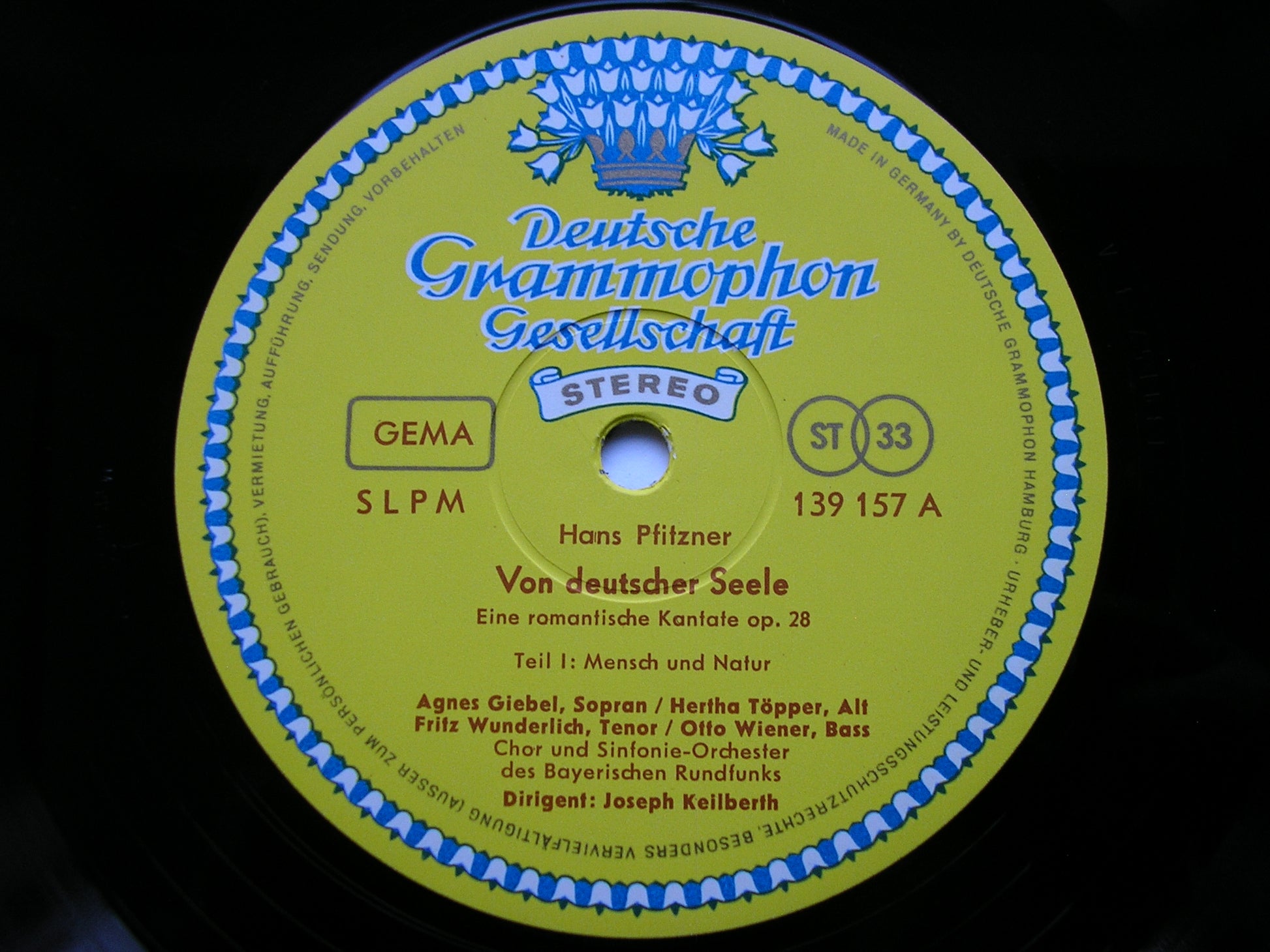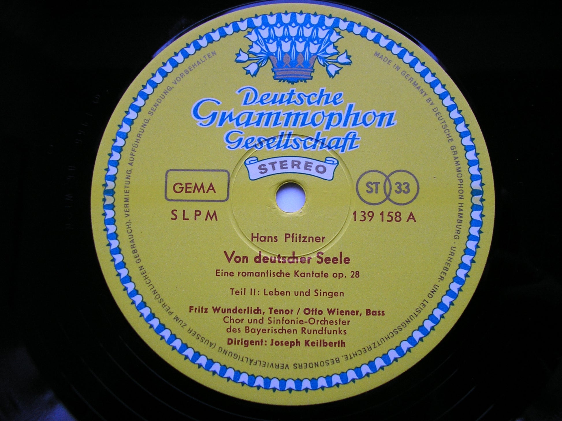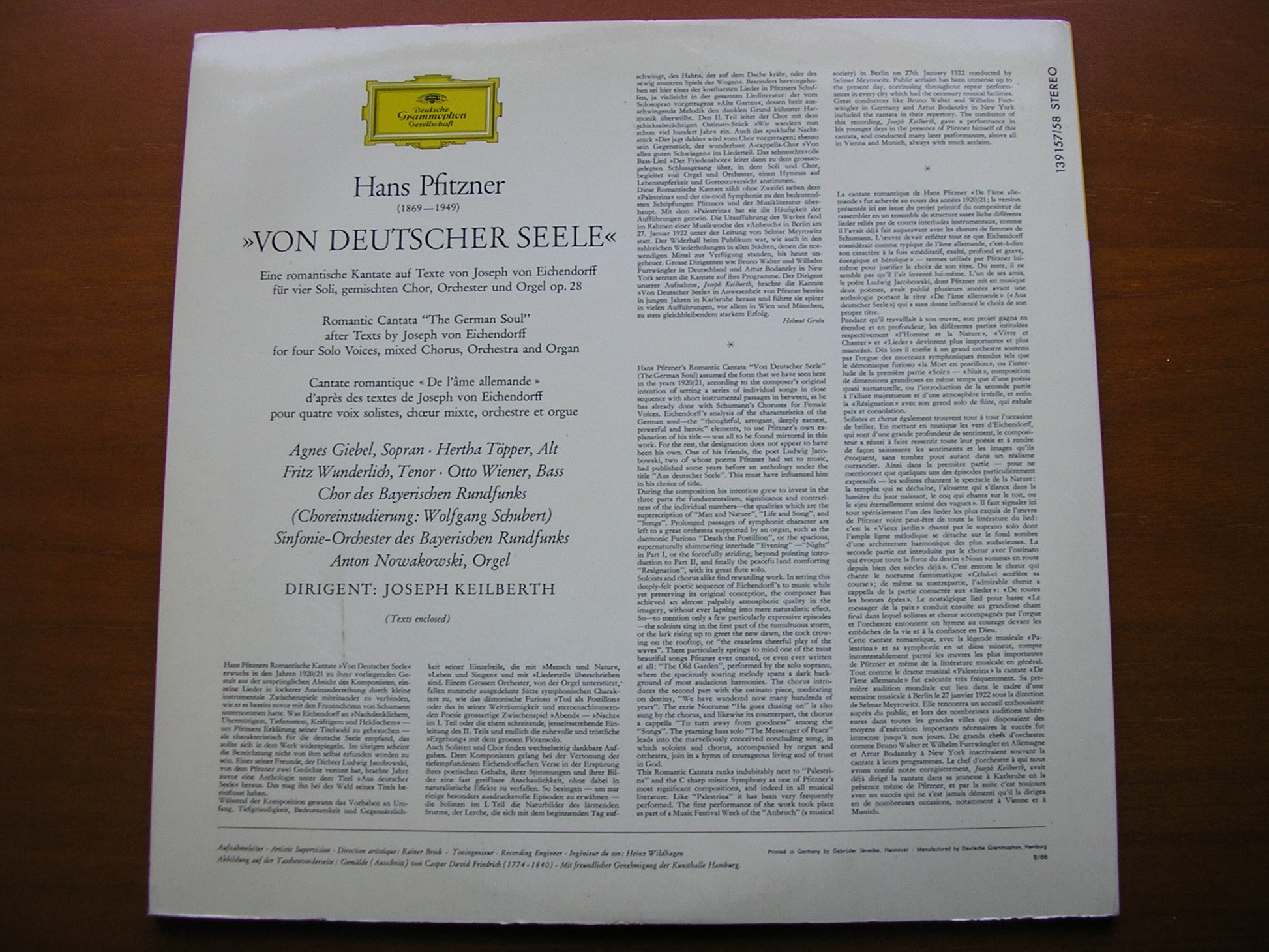 139 157/8  PFITZNER: VON DEUTSCHER SEELE     FRITZ WUNDERLICH / AGNES GIEBEL / HERTHA TOPPER / OTTO WIENER / BAVARIAN RADIO ORCHESTRA / JOSEPH KEILBERTH
