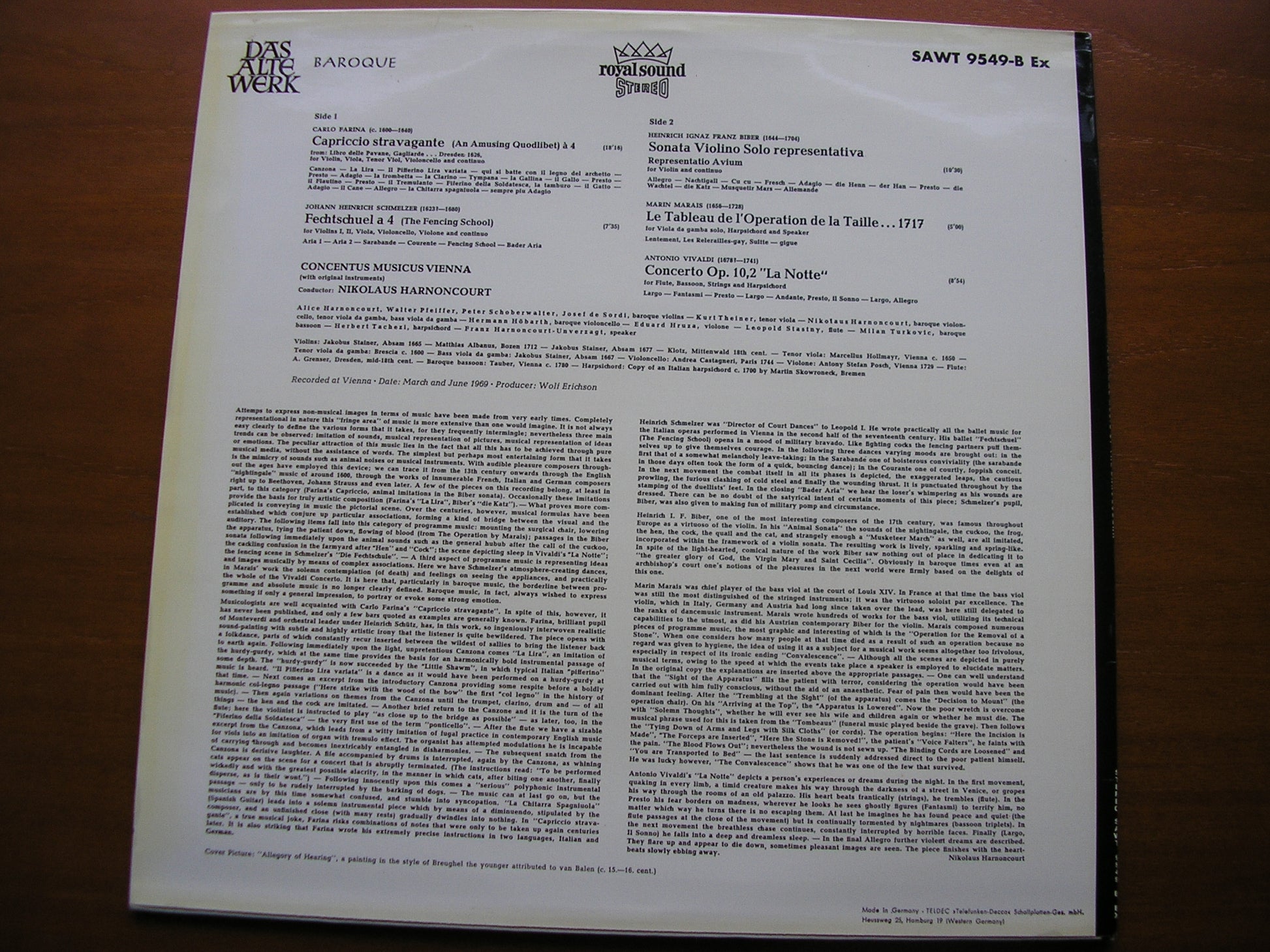 PROGRAMME MUSIC OF THE BAROQUE ERA: FARINA / SCHMELZER / MARAIS / VIVALDI / BIBER CONCENTUS MUSICUS VIENNA / HARNONCOURT SAWT 9549