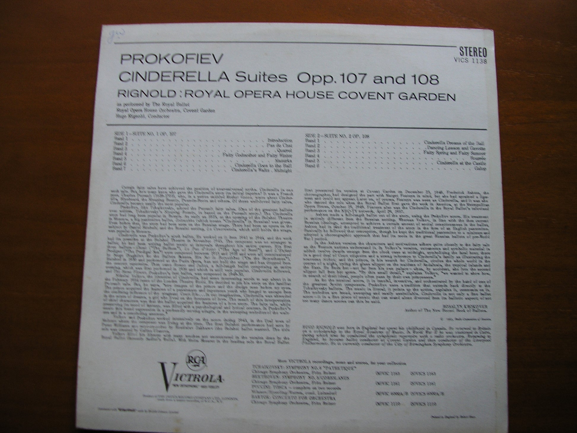 PROKOFIEV: CINDERELLA Suites RIGNOLD / ORCHESTRA OF THE ROYAL OPERA HOUSE VICS 1138
