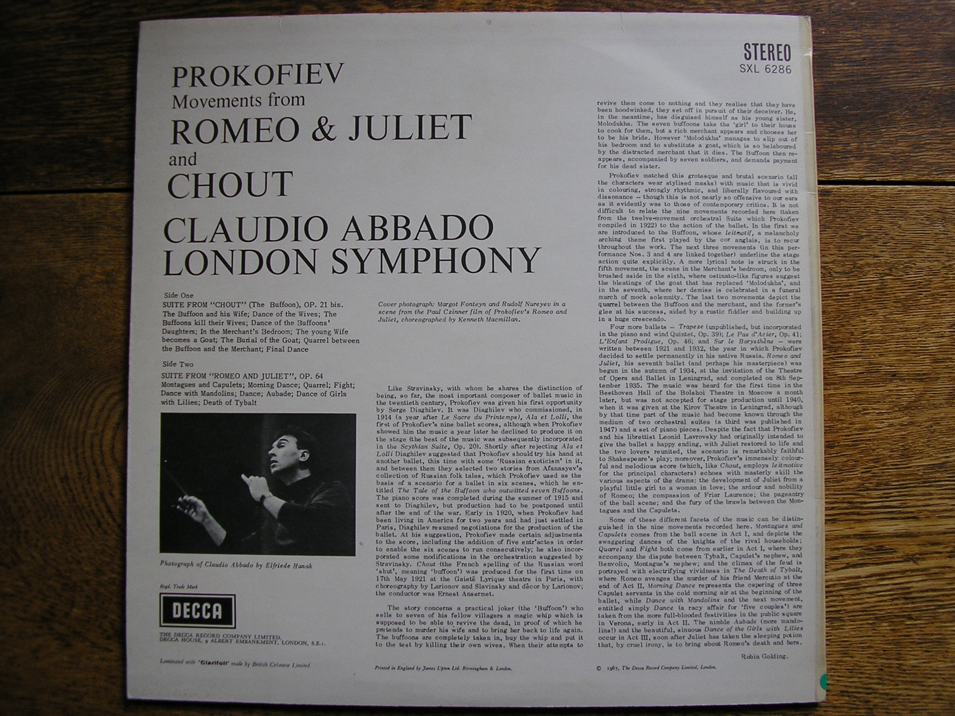 SXL 6286  PROKOFIEV: ROMEO & JULIET / CHOUT  CLAUDIO ABBADO / LONDON SYMPHONY ORCHESTRA
