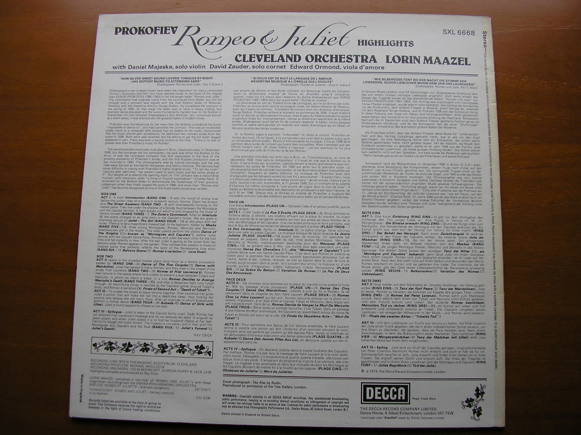 PROKOFIEV: ROMEO & JULIET highlights CLEVELAND ORCHESTRA / LORIN MAAZEL SXL 6668