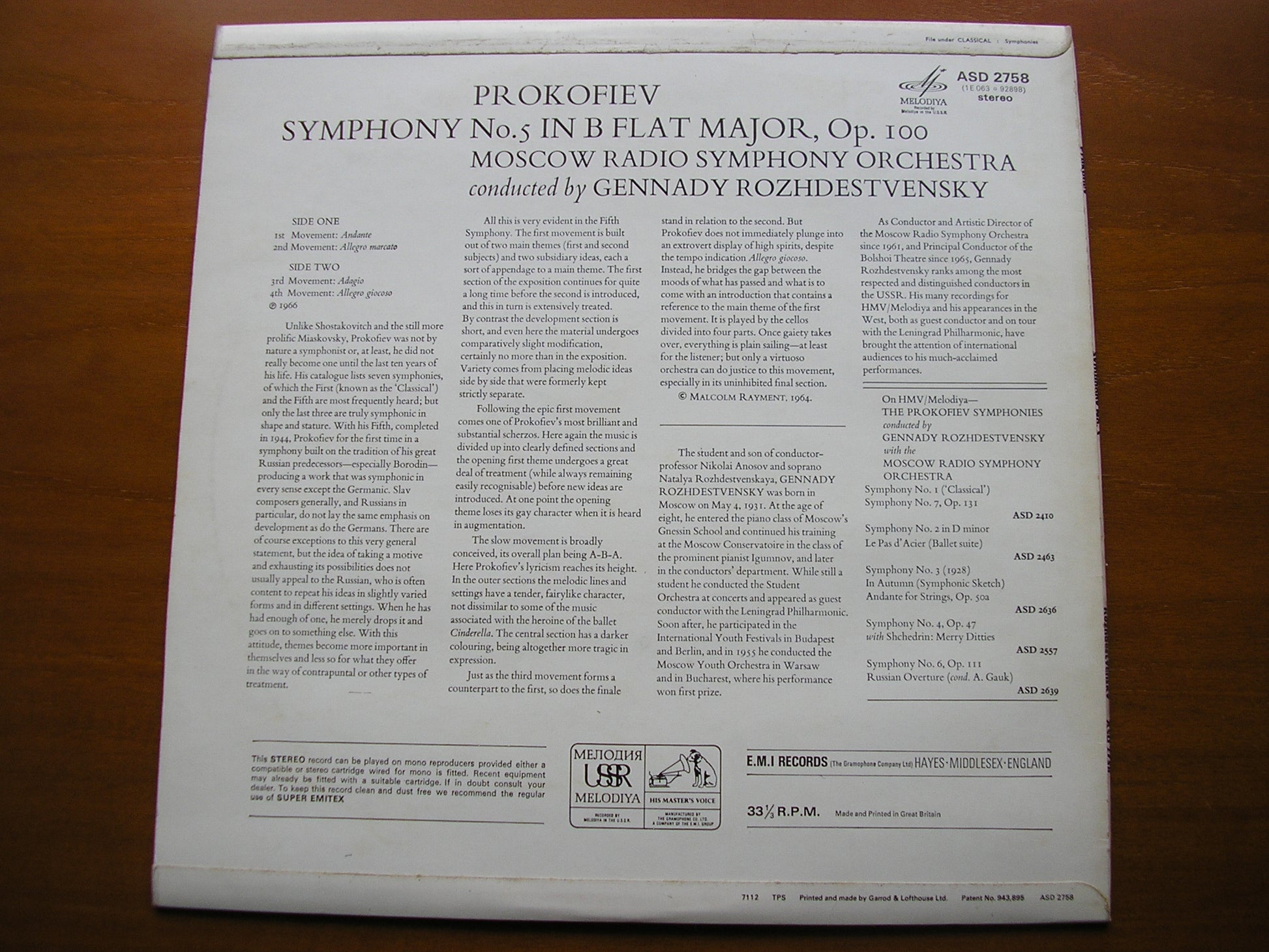 ASD 2758  PROKOFIEV: SYMPHONY No. 5     GENNADY ROZHDESTVENSKY / MOSCOW RADIO SYMPHONY ORCHESTRA