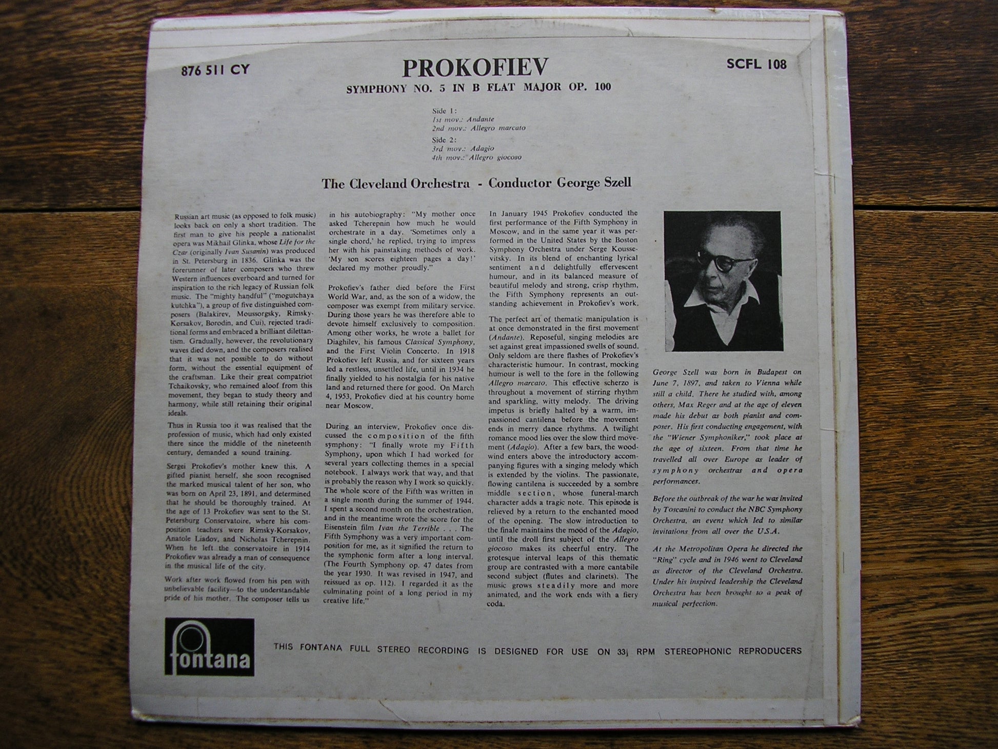 SCFL 108  PROKOFIEV: SYMPHONY No. 5    GEORGE SZELL / CLEVELAND ORCHESTRA
