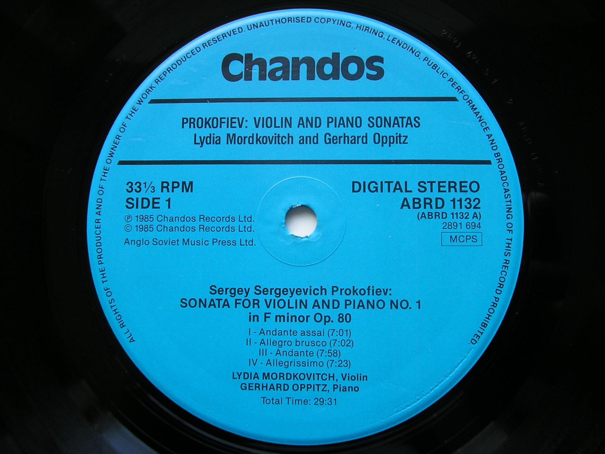 ABRD 1132  PROKOFIEV: SONATAS FOR VIOLIN & PIANO No. 1 in F / No. 2 in D      LYDIA MORDKOVITCH / GERHARD OPPITZ