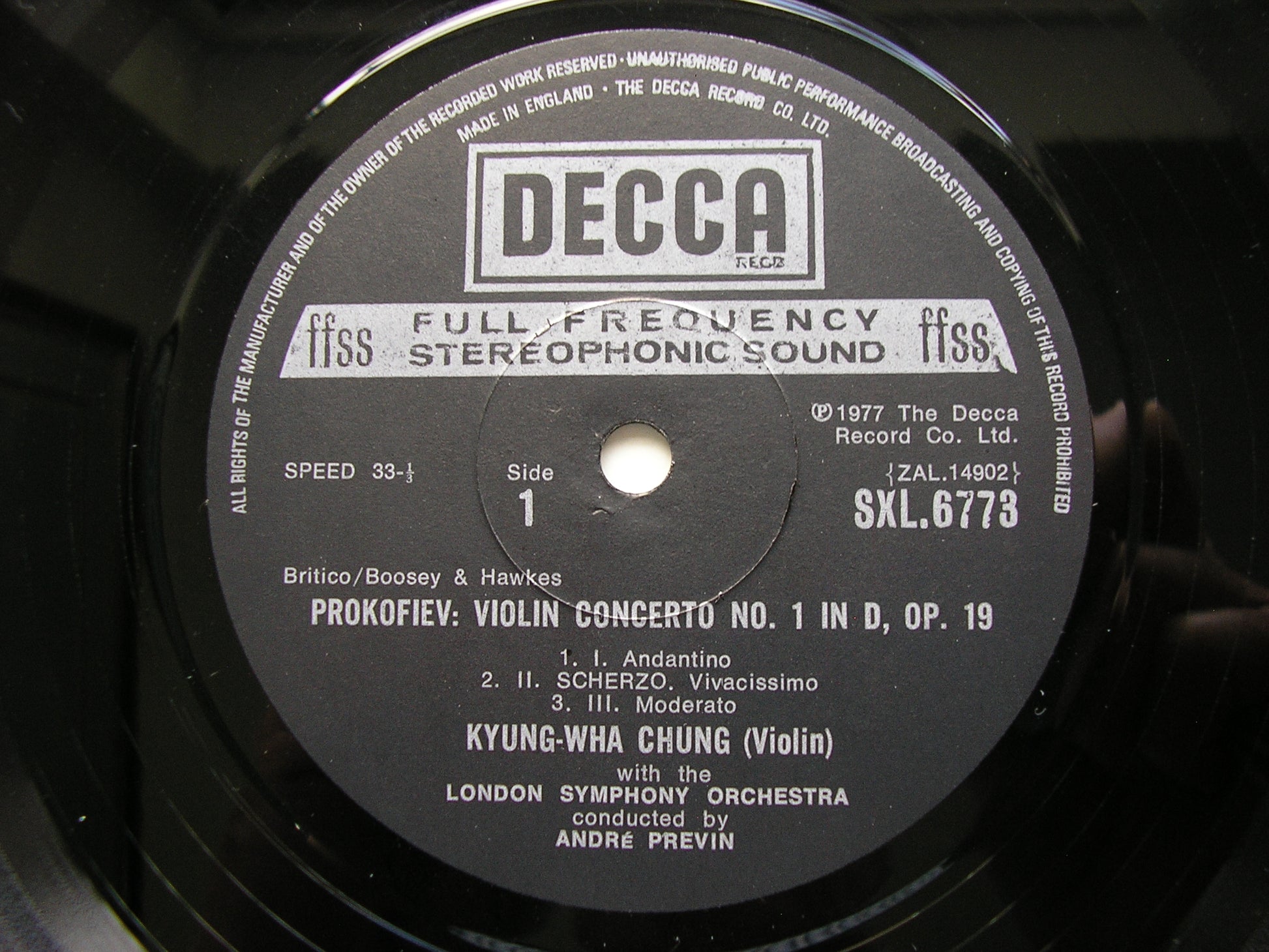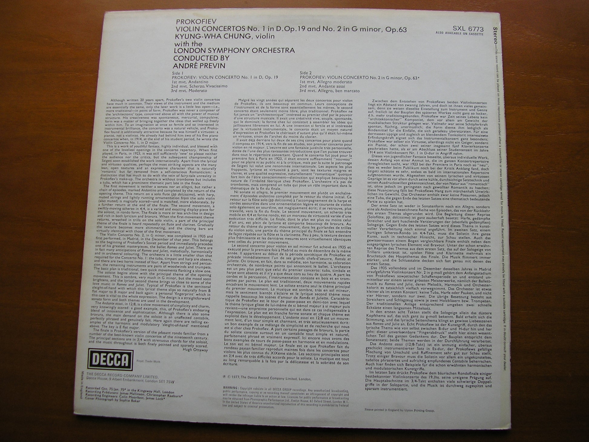 SXL 6773  PROKOFIEV: VIOLIN CONCERTOS Nos. 1 & 2      KYUNG WHA CHUNG / LONDON SYMPHONY ORCHESTRA / ANDRE PREVIN