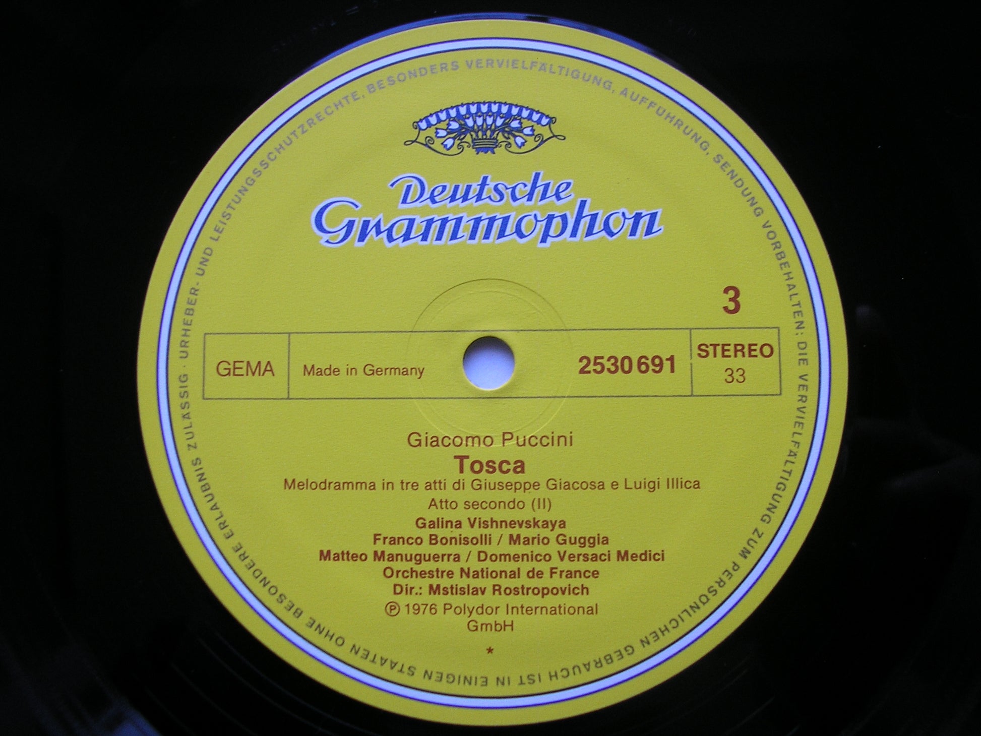2707 087  PUCCINI: TOSCA   GALINA VISHNEVSKAYA / FRANCO BONISOLLI / MATTEO MANUGUERRA / FRENCH NATIONAL ORCHESTRA / MSTISLAV ROSTROPOVICH